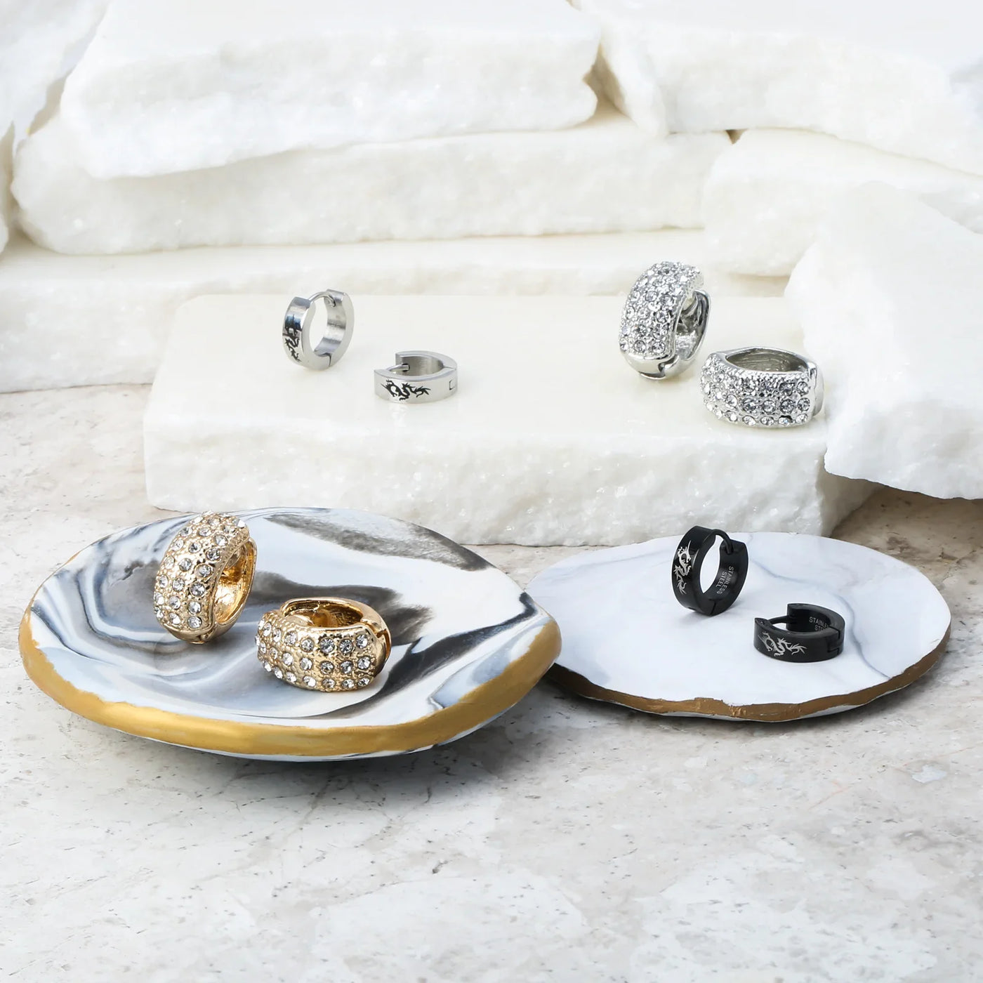 • Our huggie hoops are fun and fashionable. Clip on hoop earrings make sensational gifts for women with non pierced ears. Start shopping for a perfect Mothers Day gift for your mom, aunt or grandmother and get her our comfortable and stylish crystal earrings. They are designed in a classic huggie hoop style that will take her from day into night.