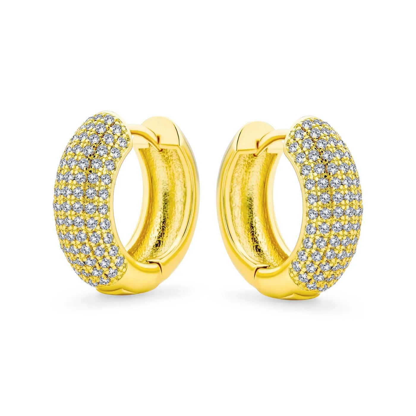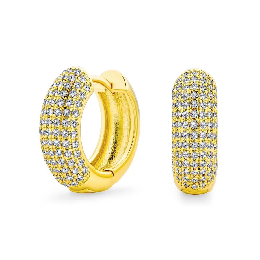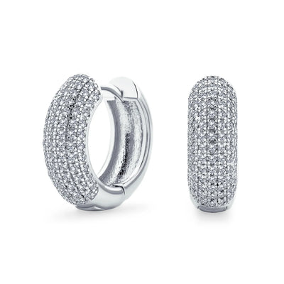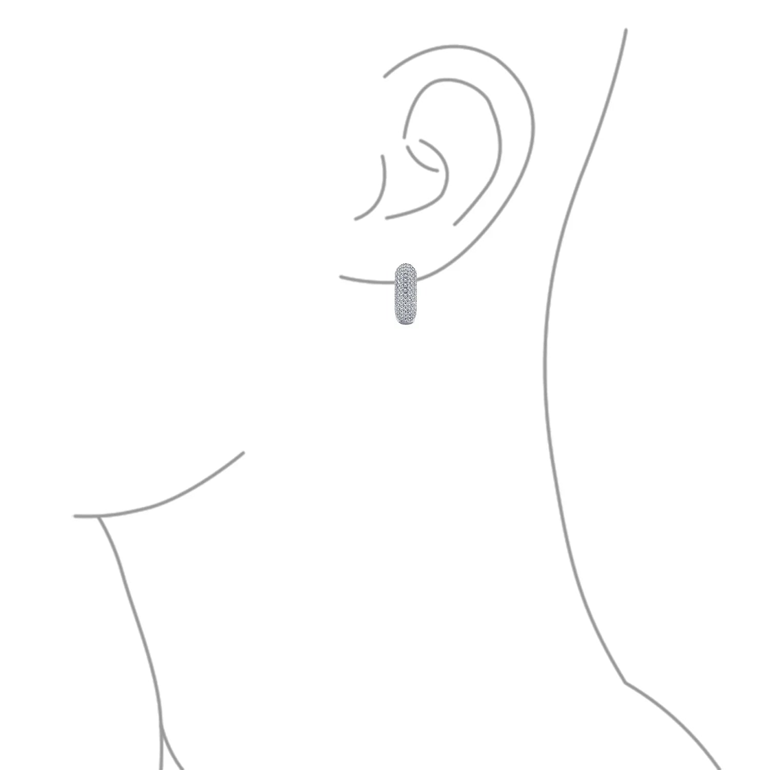 • Discover our Pave CZ Huggie Hoops, perfect for those seeking delicate yet glamorous accents. These huggie earrings are impeccably polished and glisten with captivating pave texture. Affordable elegance with just the right touch of pizzazz. Adorned with cubic zirconia, they are lightweight and comfortable. Ideal for young ladies who love a touch of sparkle. Timeless and pleasing gifts that are always well-received. Crafted with rhodium-plated brass, showcasing style and quality.
