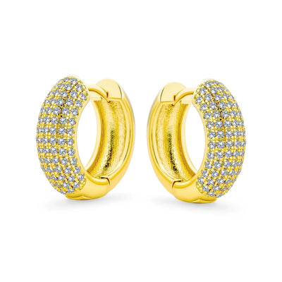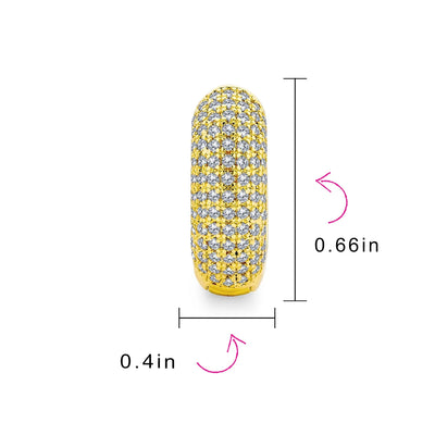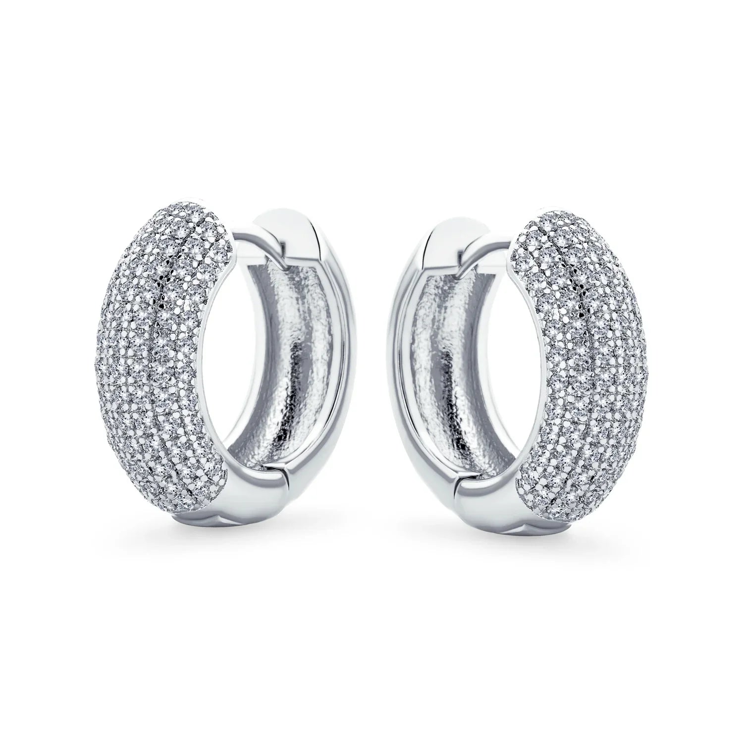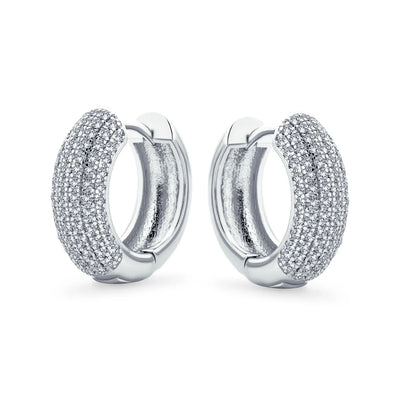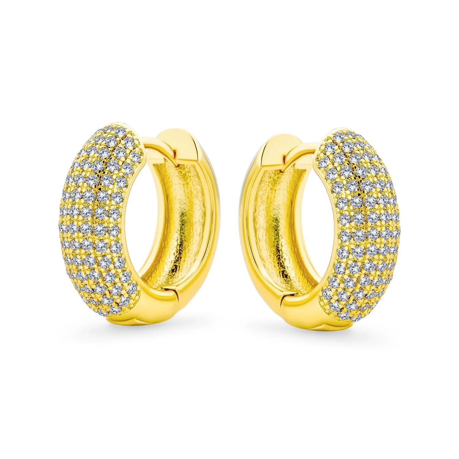 • Discover our Pave CZ Huggie Hoops, perfect for those seeking delicate yet glamorous accents. These huggie earrings are impeccably polished and glisten with captivating pave texture. Affordable elegance with just the right touch of pizzazz. Adorned with cubic zirconia, they are lightweight and comfortable. Ideal for young ladies who love a touch of sparkle. Timeless and pleasing gifts that are always well-received. Crafted with rhodium-plated brass, showcasing style and quality.