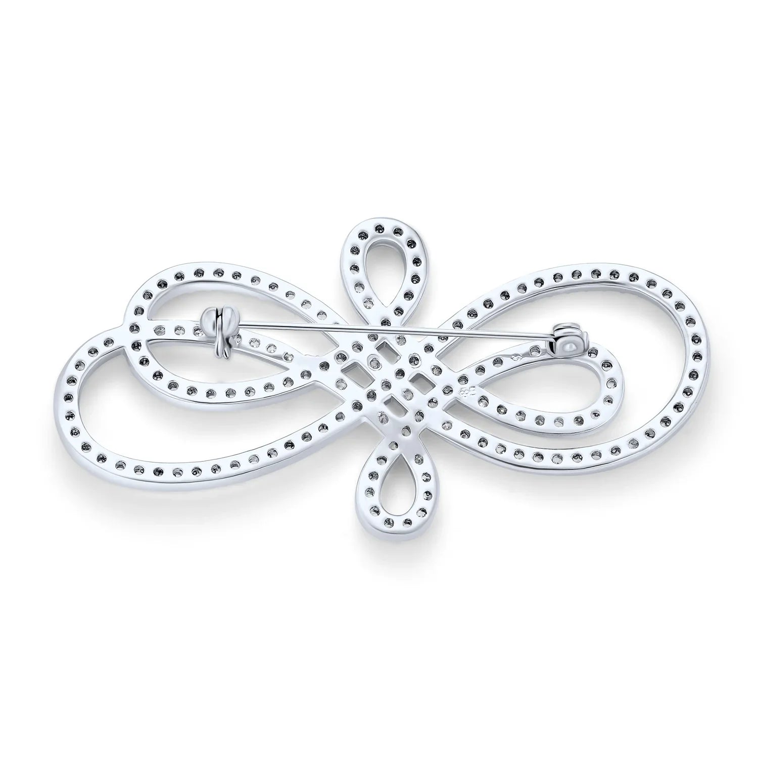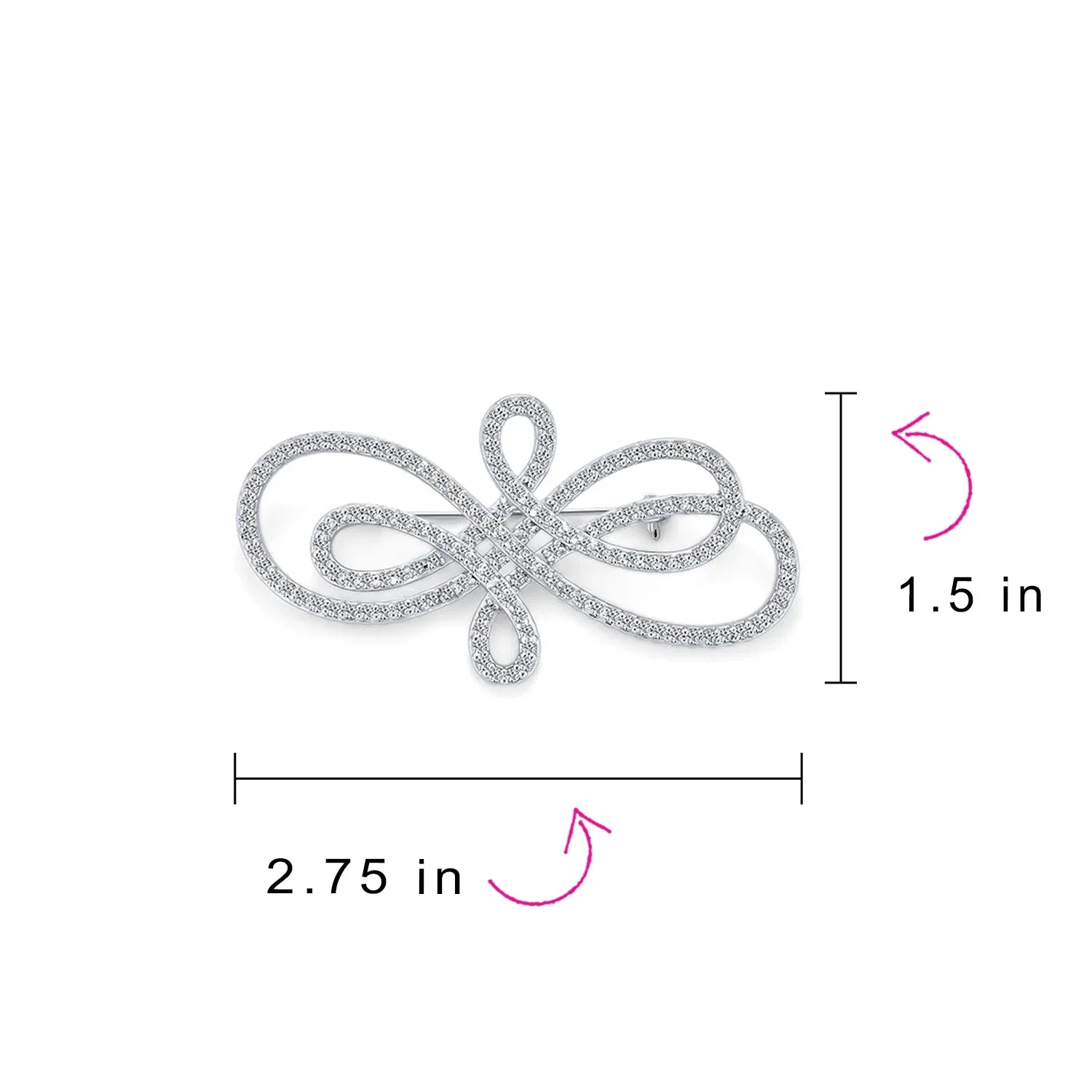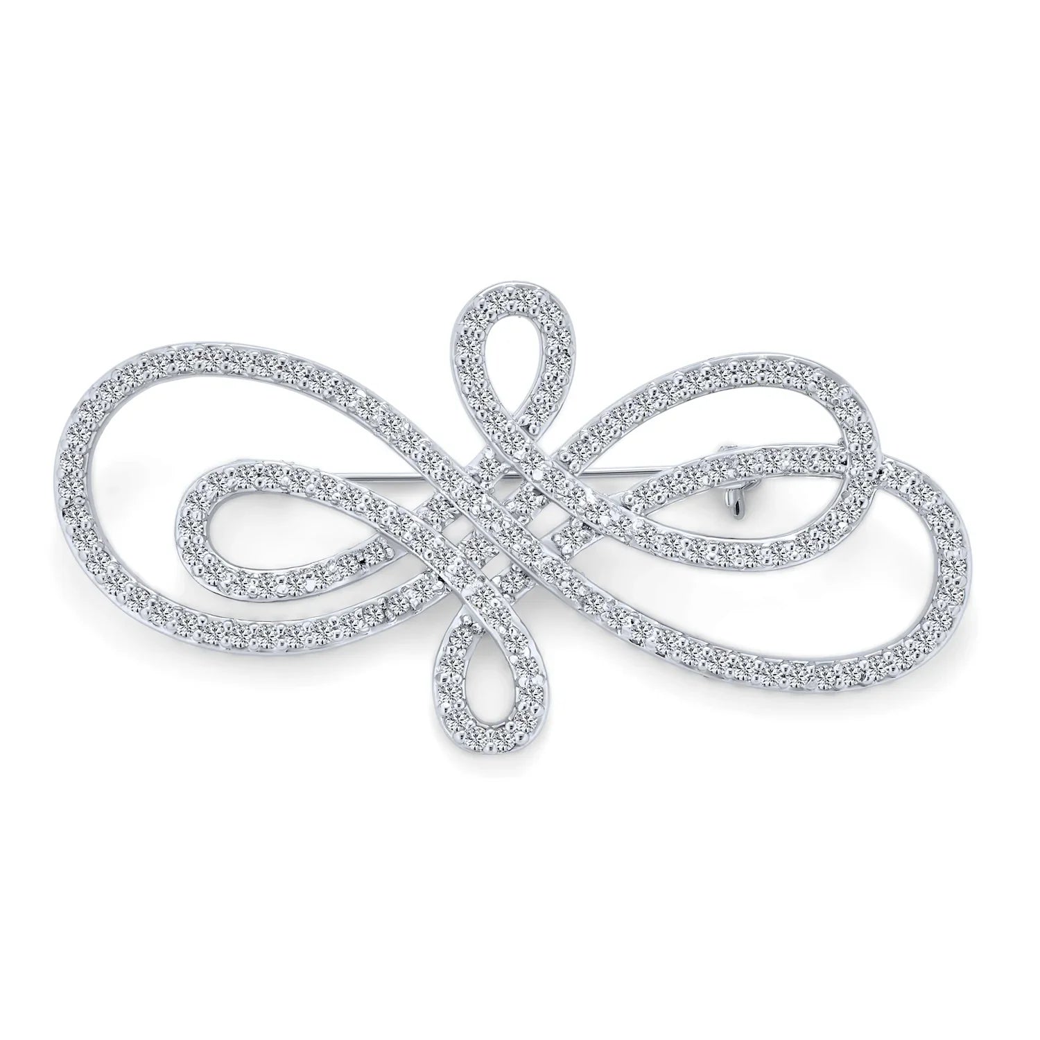 Bridal Elegant Swirl Pave Cubic Zirconia Art Deco Brooche Pin Silver Plated - Bling Jewelry