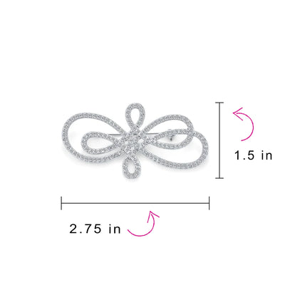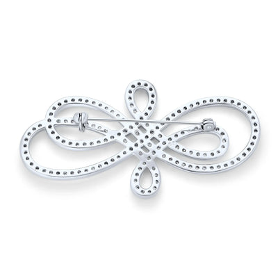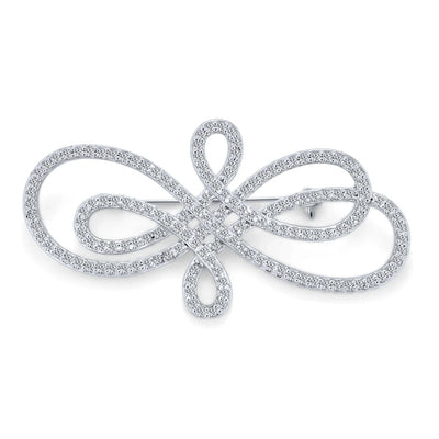 Bridal Swirl Pave Cubic Zirconia Art Deco Brooche Pin Silver