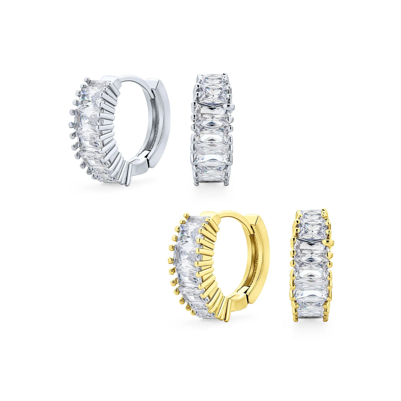 - These bridal huggie earrings feature a beaded milgrain edge for added sparkle, accented with glistening baguette CZs, making them a stunning choice for an April birthday.