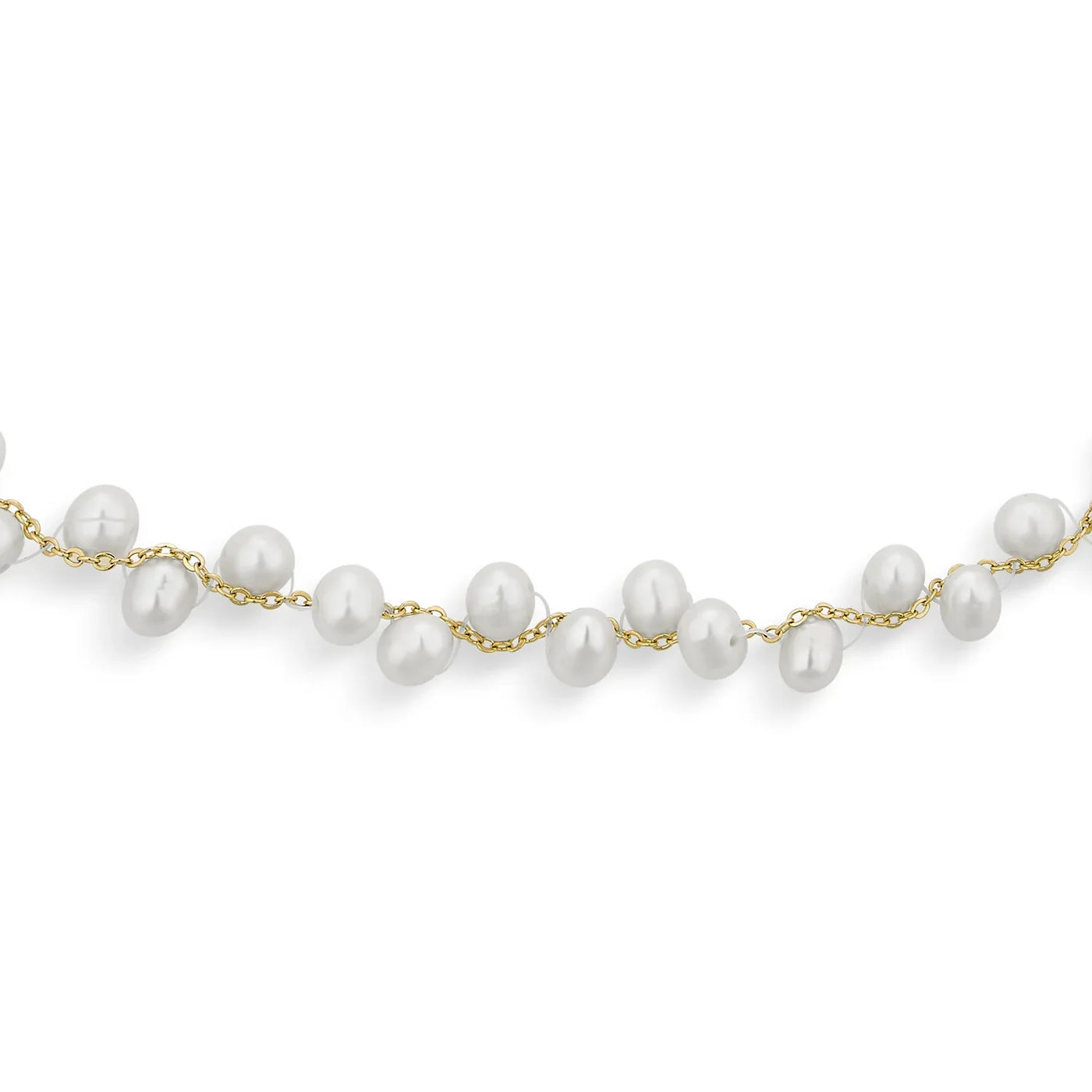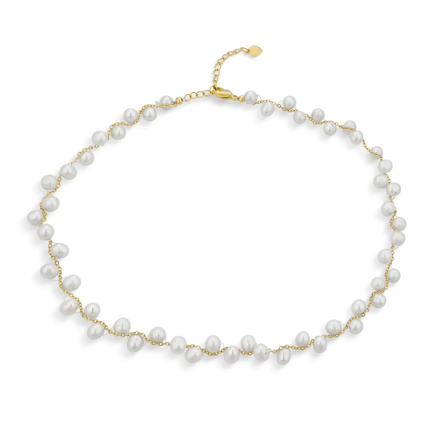 - Enhance your wedding day look with our chic, stunning pearl necklace. Pearls are evenly spaced on a delicate gold-plated chain. This bridal jewelry is a must-have for your collection. Guaranteed elegance that complements most wardrobes. Flattering style for everyone.
