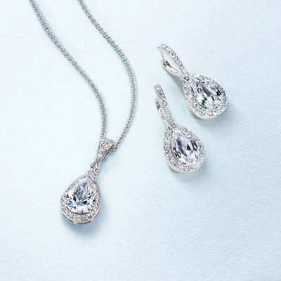 • Alluring and captivating, this stunning teardrop pendant necklace features .925 Sterling Silver and dazzling Cubic Zirconia. Ideal for weddings or elegant evenings. Enhance your style with this chic necklace. Perfect for brides and bridesmaids gifts.