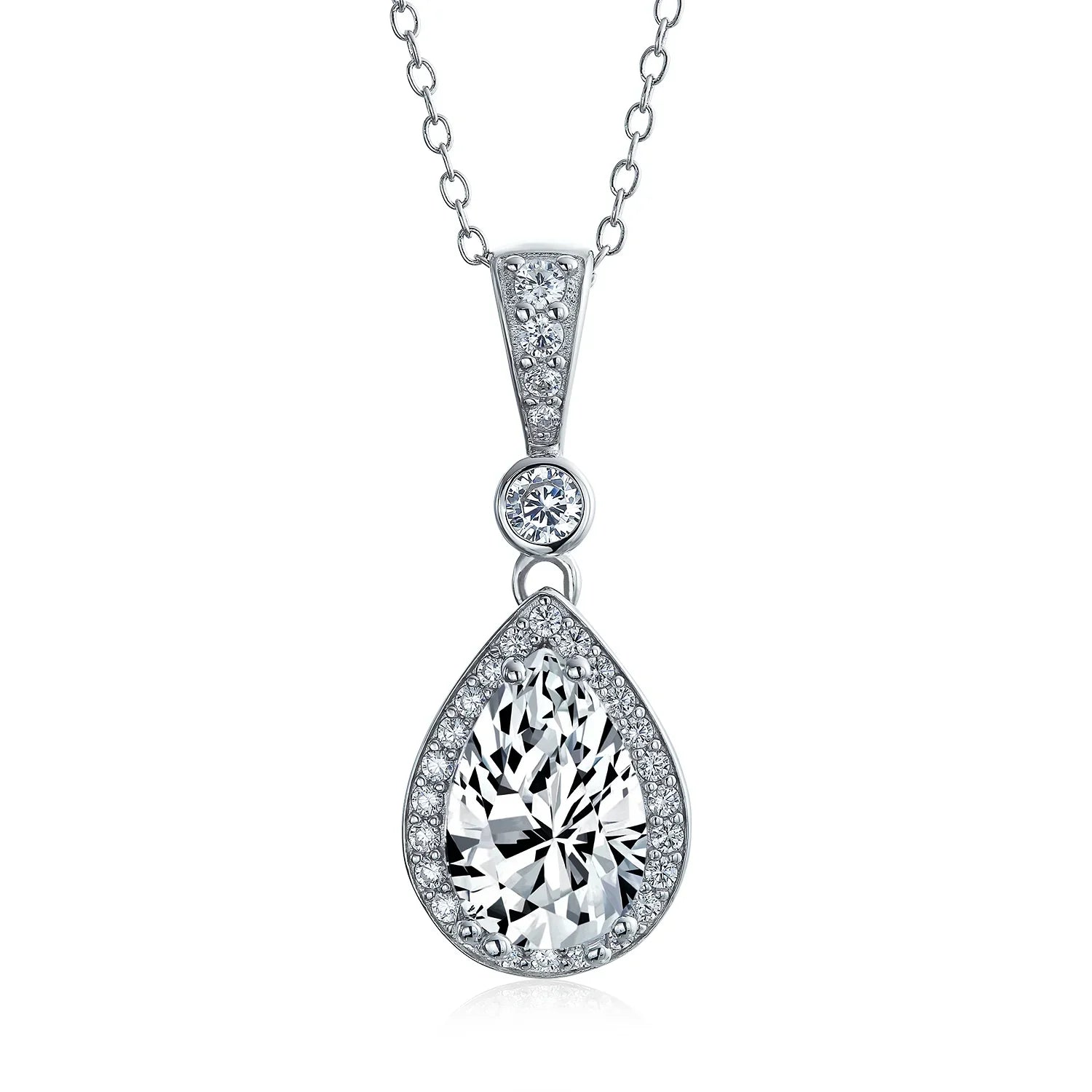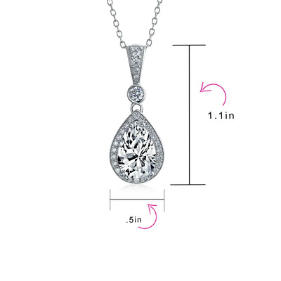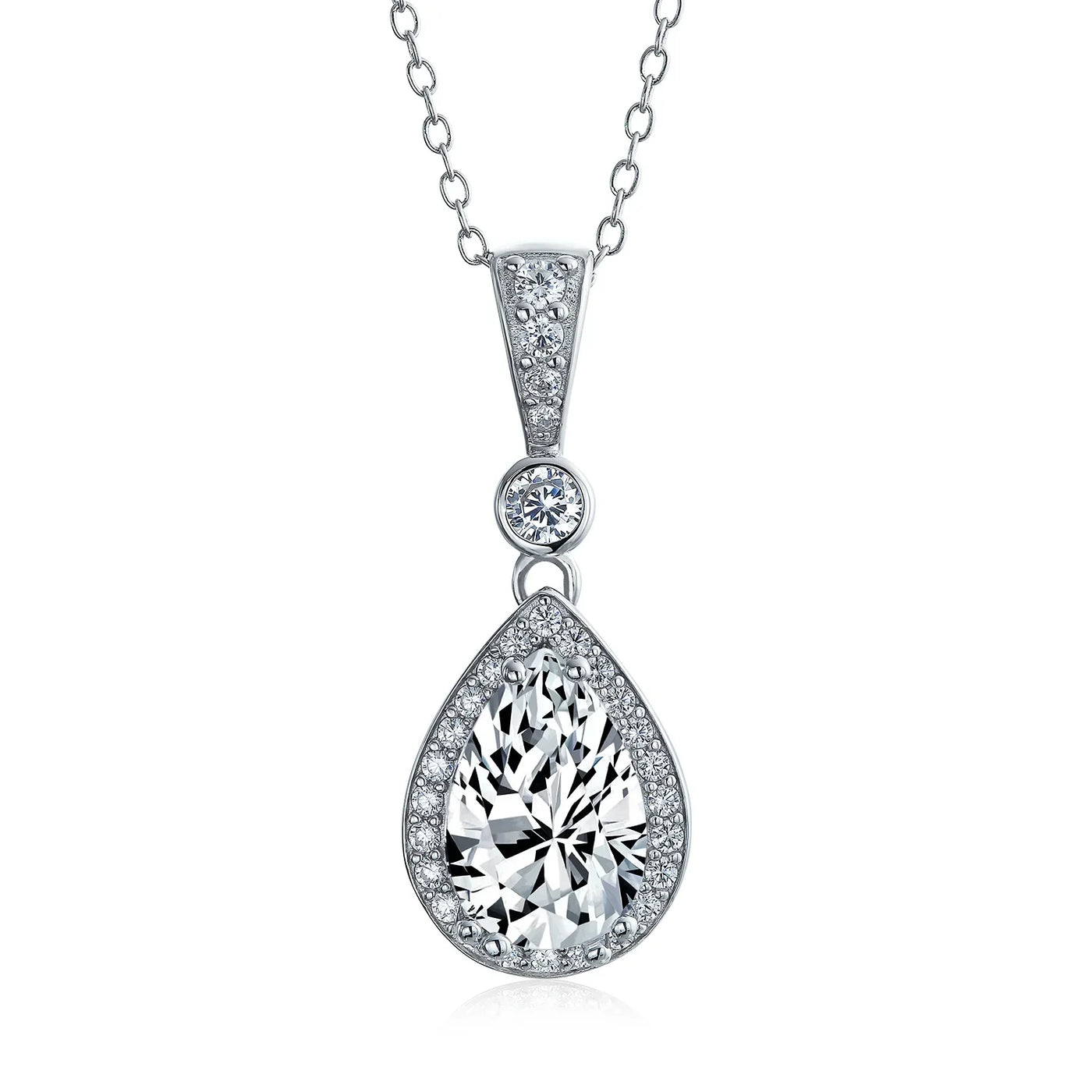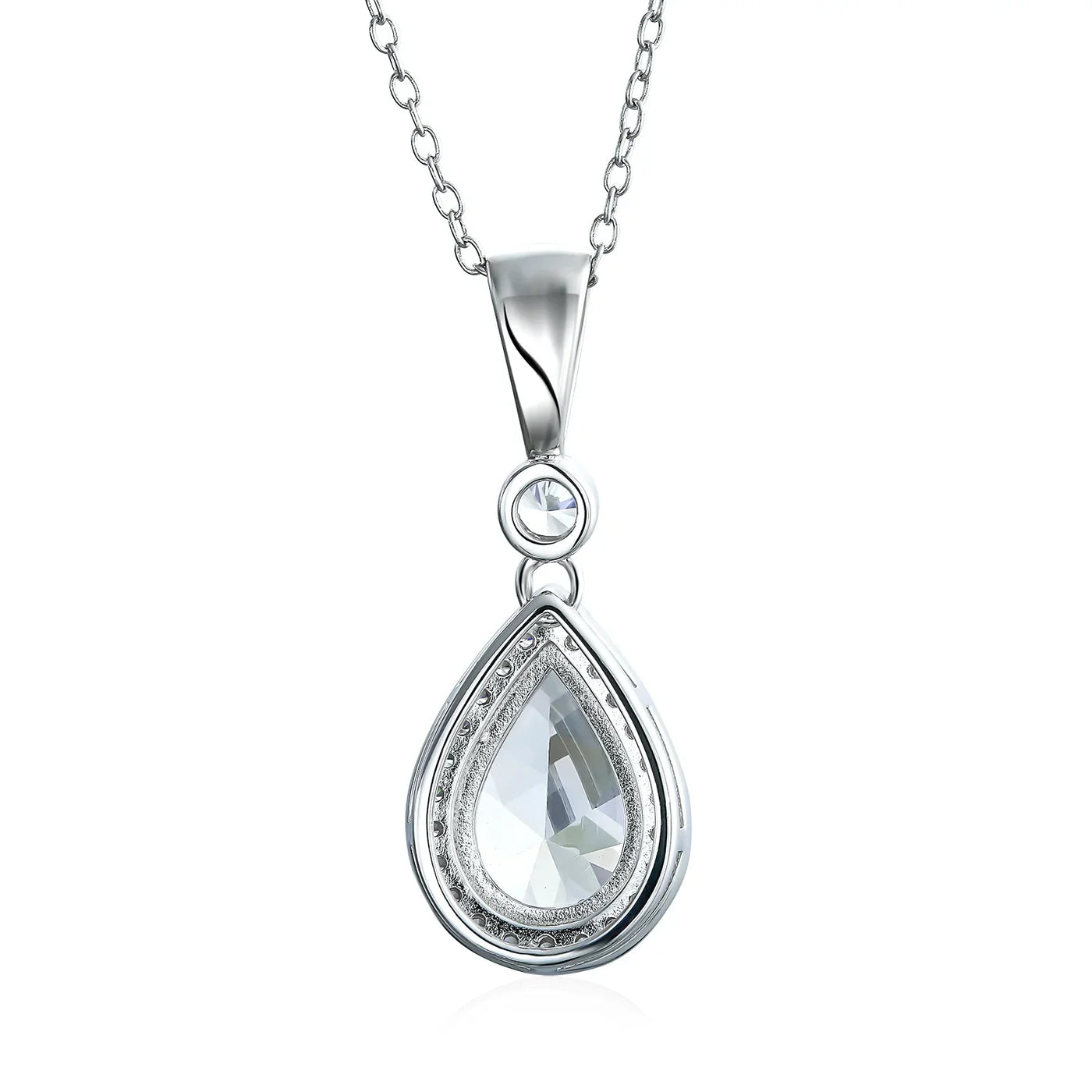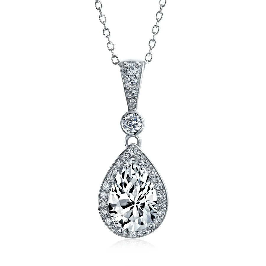 Bridal Necklace CZ Teardrop Solitaire Pendant for Wedding in Sterling Silver - Bling Jewelry