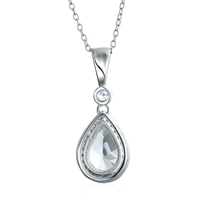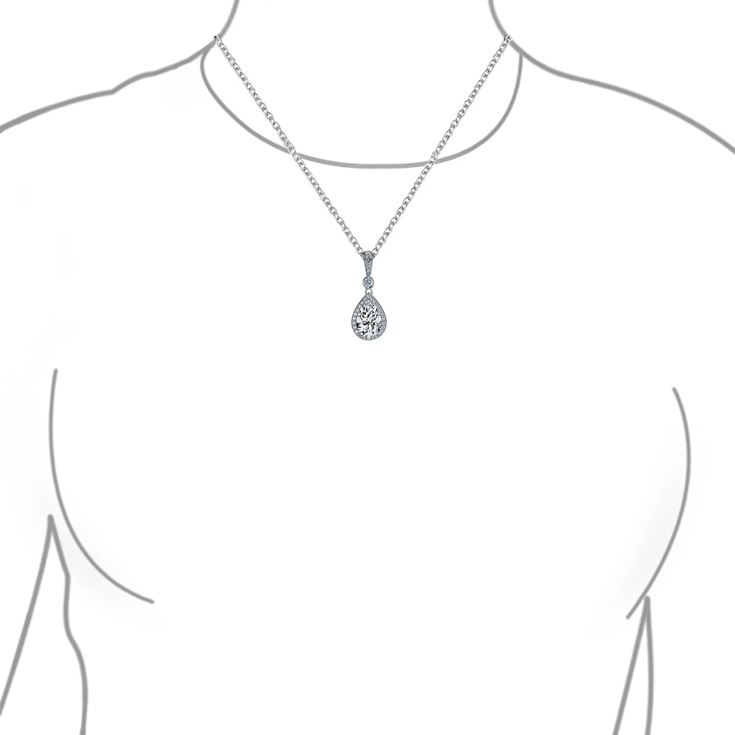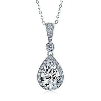 Bridal Necklace CZ Teardrop Solitaire Pendant for Wedding in Sterling Silver