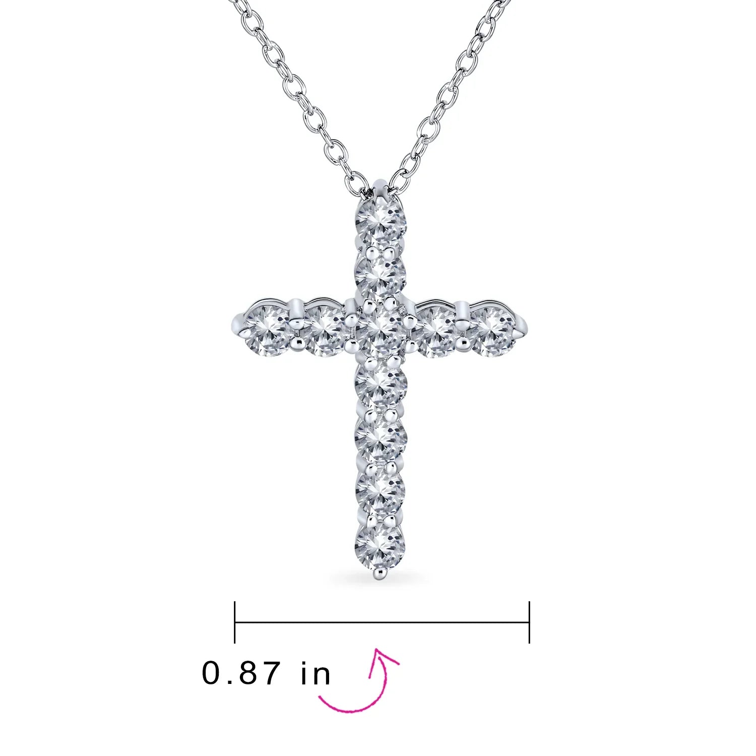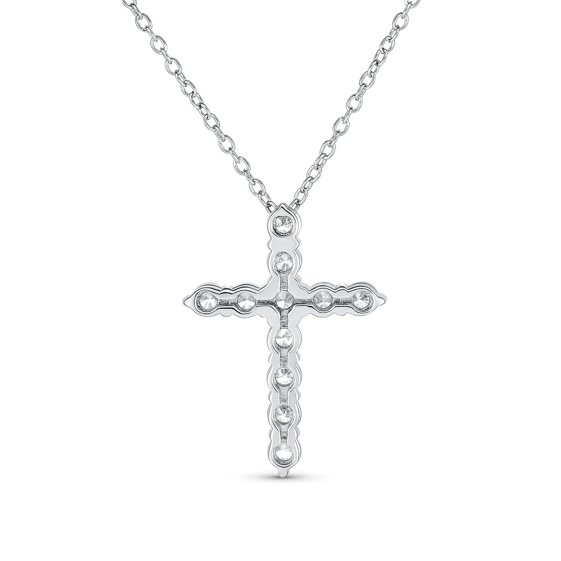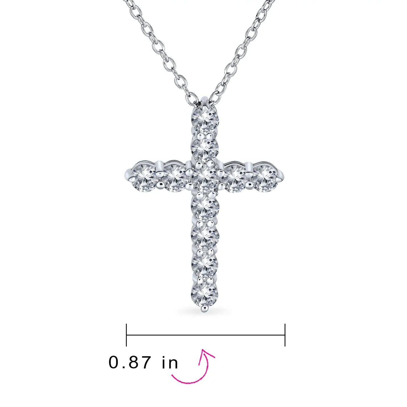 - This exquisite .925 Sterling Silver cross pendant is perfect for a queen. Adorned with round cut Cubic Zirconia in a pave setting. The stunning cross necklace offers a classic, sophisticated look. Made from solid .925 Sterling Silver, it exudes elegance. Ideal for baptisms, First Communions, Christenings, and Confirmations. Comes with an 18-inch chain. Show your faith with style today.