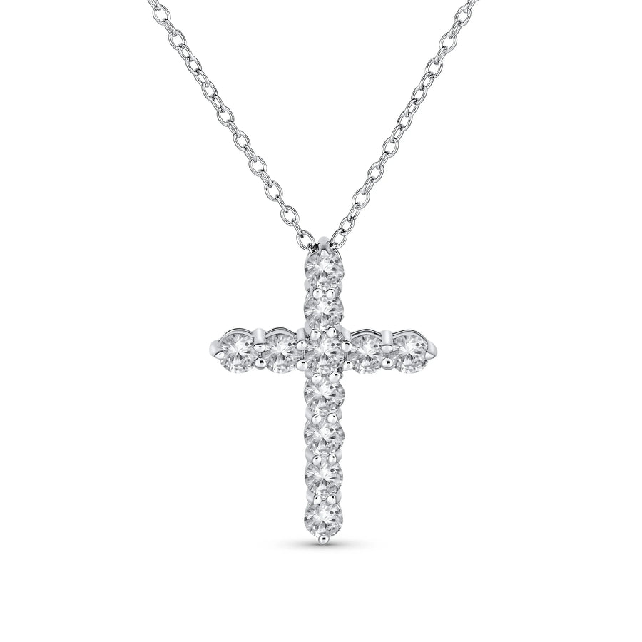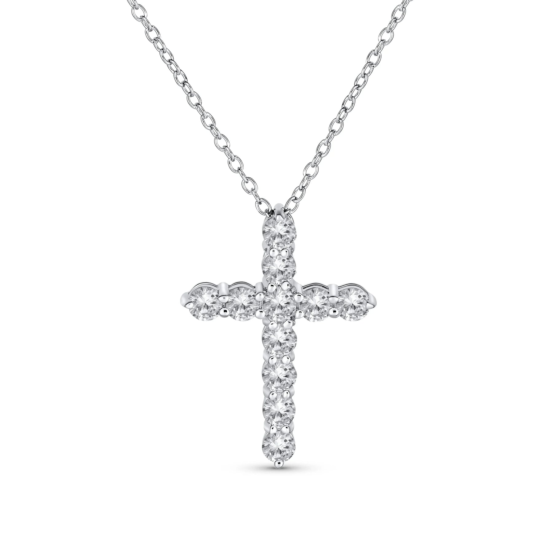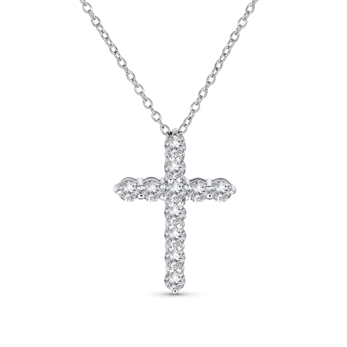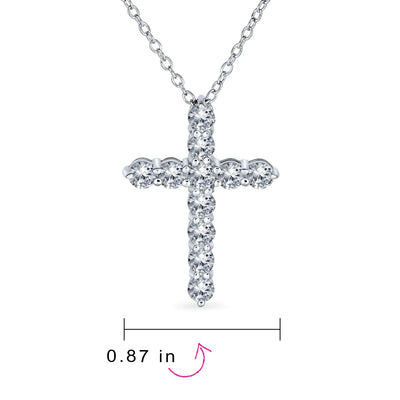- This exquisite .925 Sterling Silver cross pendant is perfect for a queen. Adorned with round cut Cubic Zirconia in a pave setting. The stunning cross necklace offers a classic, sophisticated look. Made from solid .925 Sterling Silver, it exudes elegance. Ideal for baptisms, First Communions, Christenings, and Confirmations. Comes with an 18-inch chain. Show your faith with style today.