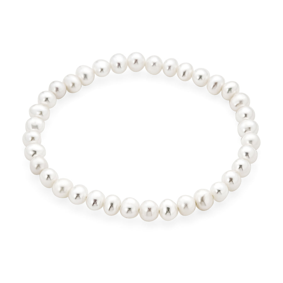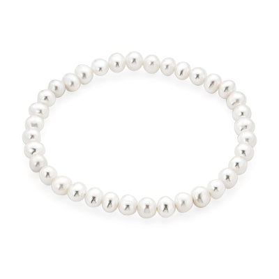 - An exquisitely delicate style for your precious little one exuding classic femininity. This beautifully designed stretch bracelet features a strand of luminous, 4mm, freshwater cultured pearls ideal for your flower in your wedding ensemble.