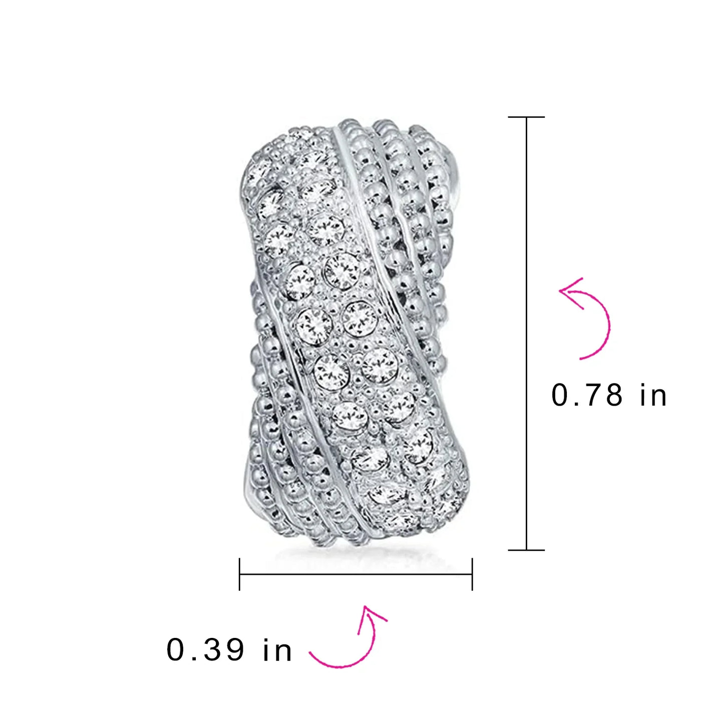 - Measure: 0.78 inch L x 0.39 inch W, Weight: 8.4 grams, Material: Brass, Rhodium Plating, Cubic Zirconia