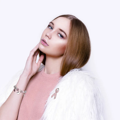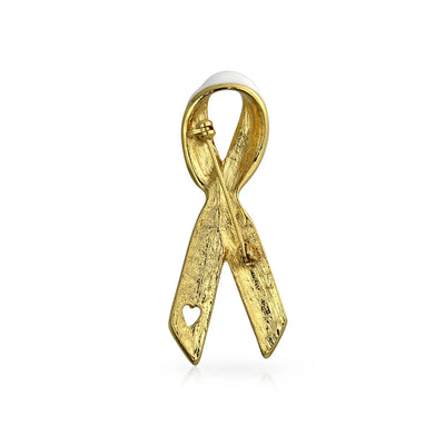 - Totally tricked-out! This breast cancer awareness ribbon pin is made from Gold Plated alloy and showcasing the classic pink enamel look. A cutout open heart is adorned one of the edge of the pink ribbon, giving it a unique touch. The pink ribbon pin is widely used for important events such as breast cancer walks, fundraisers and pink ribbon campaigns. Give this pink ribbon pin to any cancer survivors to show your support and fight for the cause. October is the National Breast Cancer Awareness Month.
