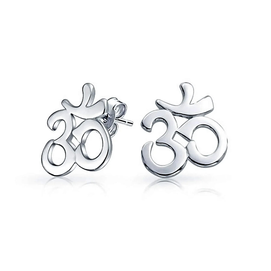 - Introducing our newest pair of sterling silver open Aum Om stud earrings. These adorable and stylish stud earrings for women are finely crafted of gleaming 925 sterling silver made in a very pretty om design. A new pair of inspirational Aum studs will help you feel tranquil and serene as you go about your daily routine. Wear these Aum earrings for work or for play and add a bit of spiritual flair to your look. These sterling silver yoga studs will fit securely as they have a post with a friction butterfly back. Buy a pair of silver stud earrings today and begin your spiritual and fashionable journey. Simple, yet striking, we think you will enjoy wearing a new pair of om studs with your best everyday looks.