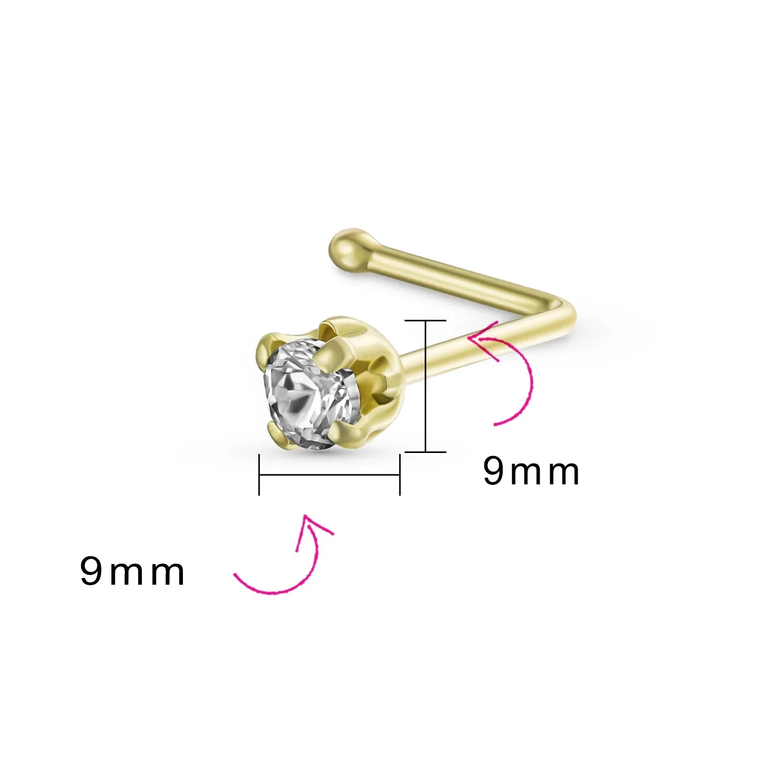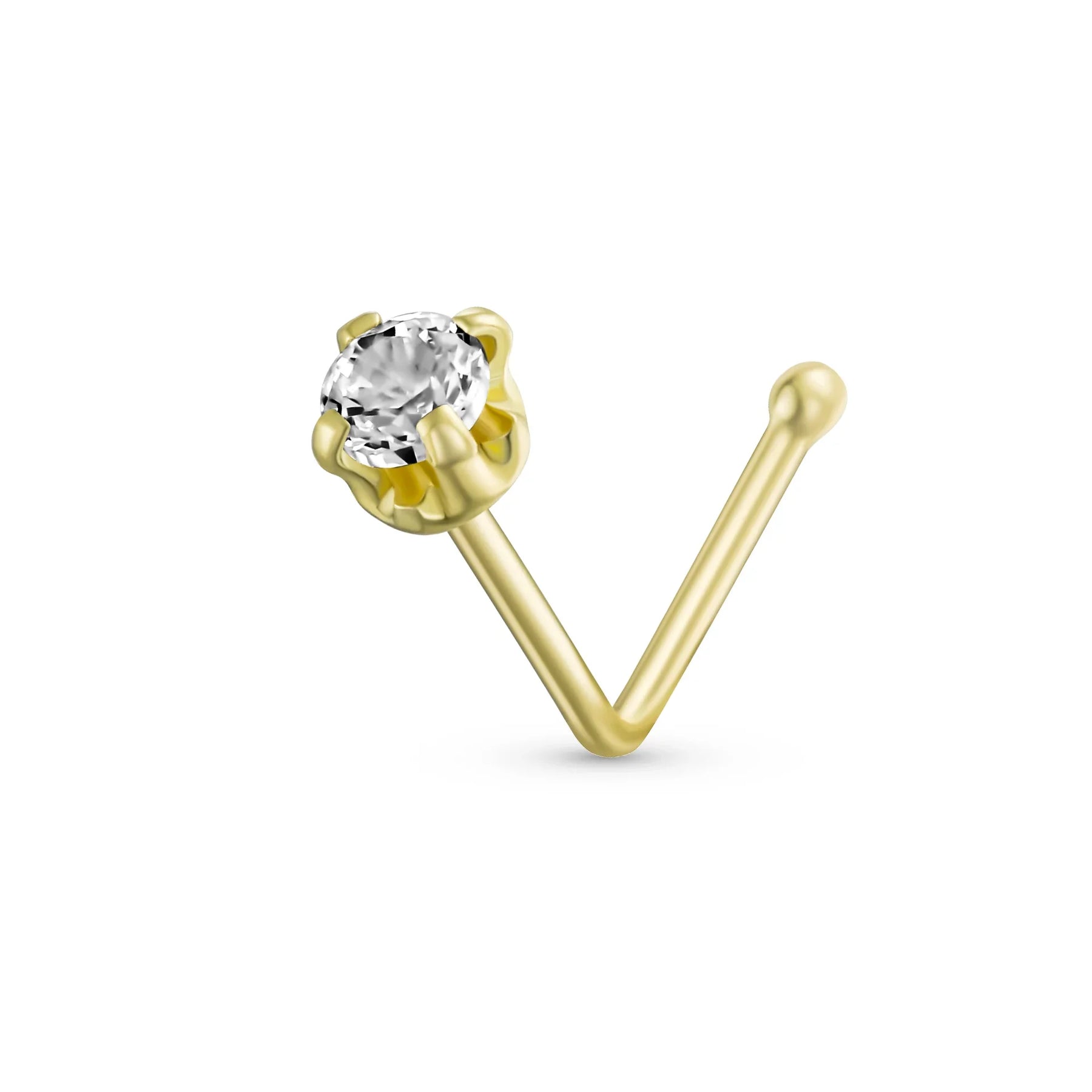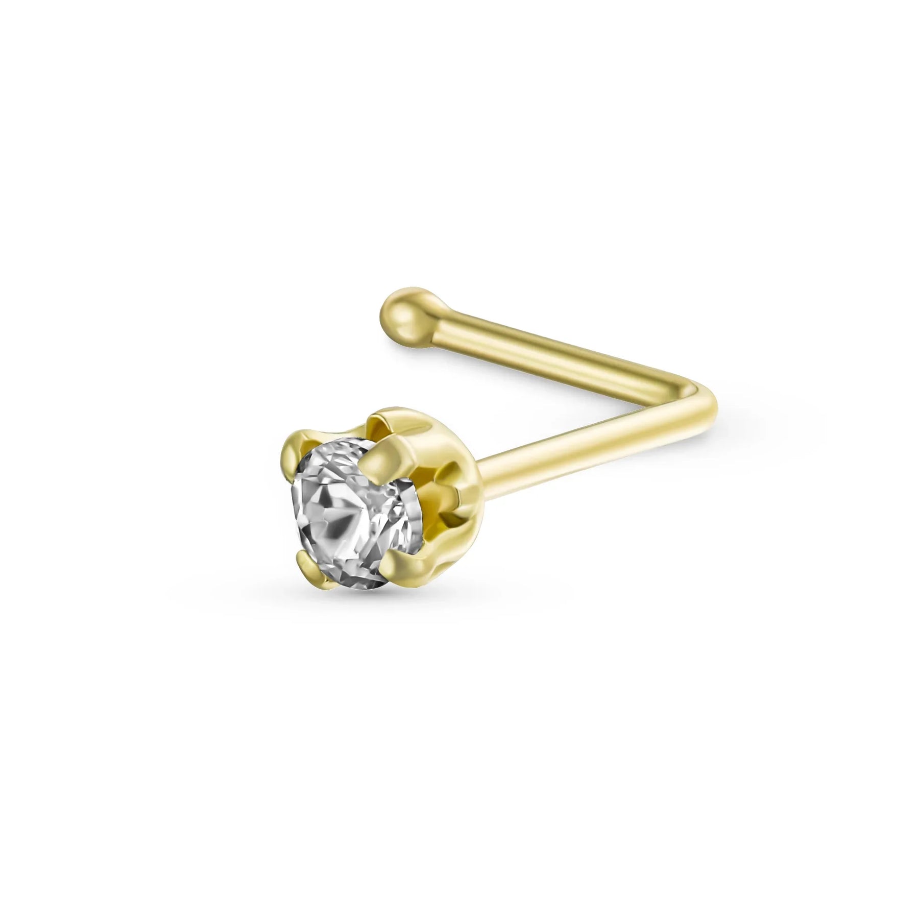 - Enhance your look with this classic and sophisticated nose stud, crafted from premium Cubic Zirconia and 10K Solid Gold. Ideal for helix, daith, cartilage, and nose piercings, this petite L-shaped stud boasts a lustrous, high-polished finish that is both lightweight and comfortable. Seamlessly complement any ensemble, from casual to formal, with this elegant accessory.