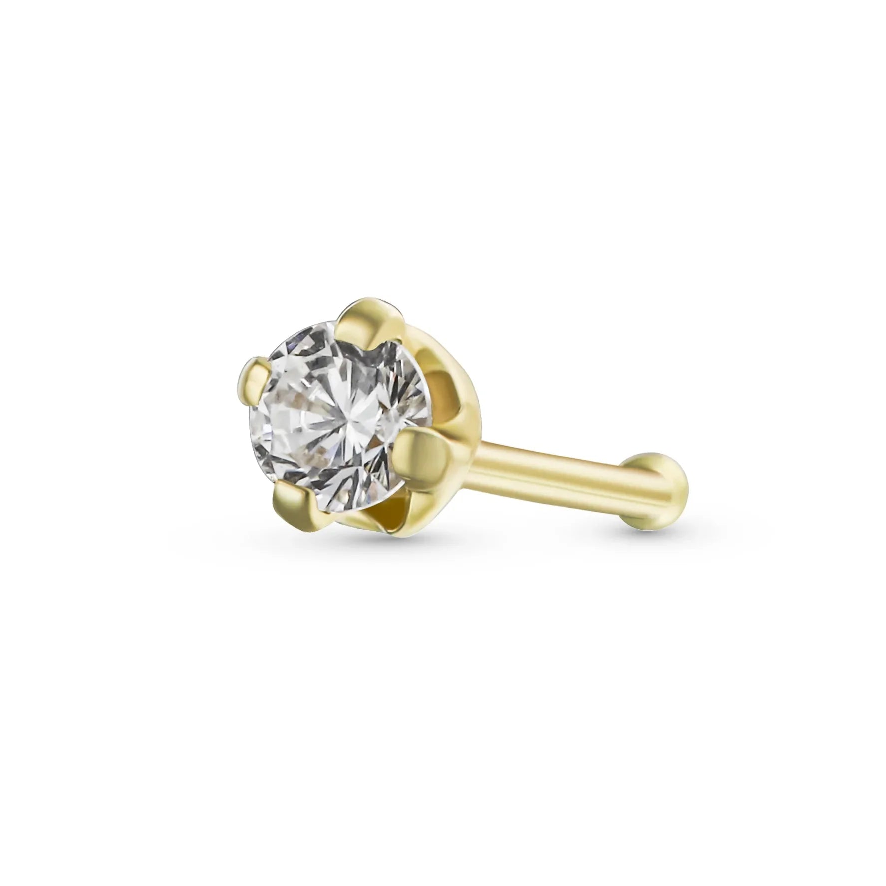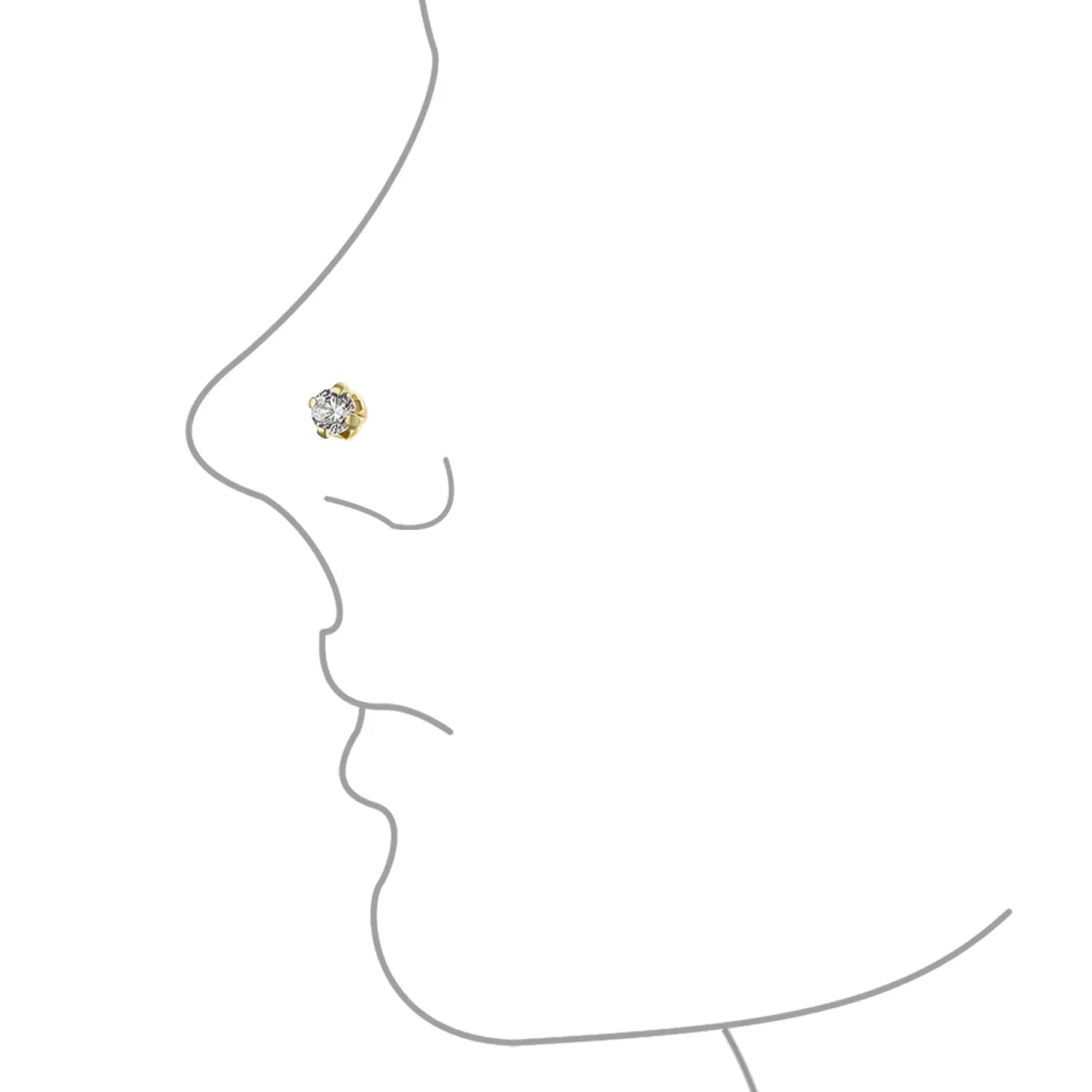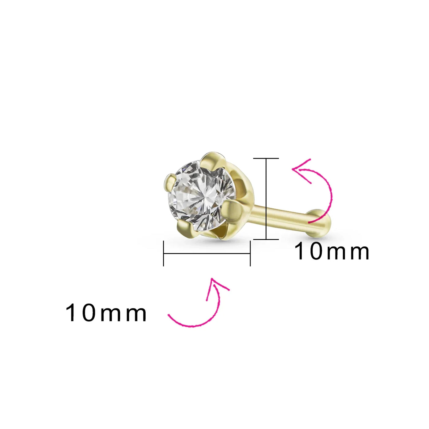 - Enhance your look with this classic and sophisticated nose stud, crafted from premium Cubic Zirconia and 10K Solid Gold. Ideal for helix, daith, cartilage, and nose piercings, this exquisite stud boasts a high-polished finish for a refined appearance. Designed for comfort and ease, its lightweight nature makes it a versatile accessory that seamlessly elevates any ensemble, whether casual or formal.