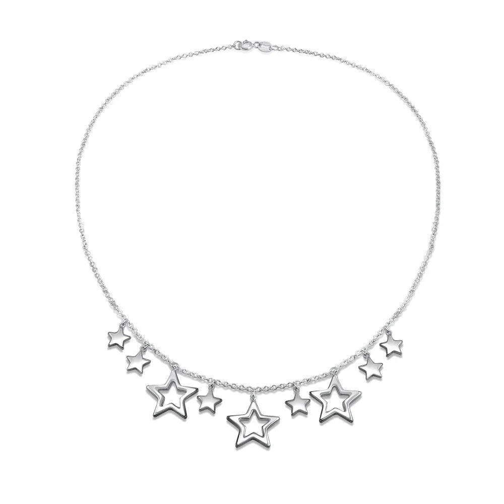 - Sensational in Stars. Our Dangling Star Necklace is crafted from solid .925 Sterling Silver and rhodium plated for maximum shine and tarnish resistance. Featuring three open hearts and six smaller solid hearts, this necklace is both elegant and unique. The adjustable 16-17 inch chain adds versatility. Lightweight with a spring ring closure, it combines beauty and function. Pair with our dangling earrings for a complete constellation look. Order yours today.
