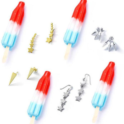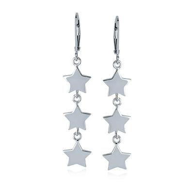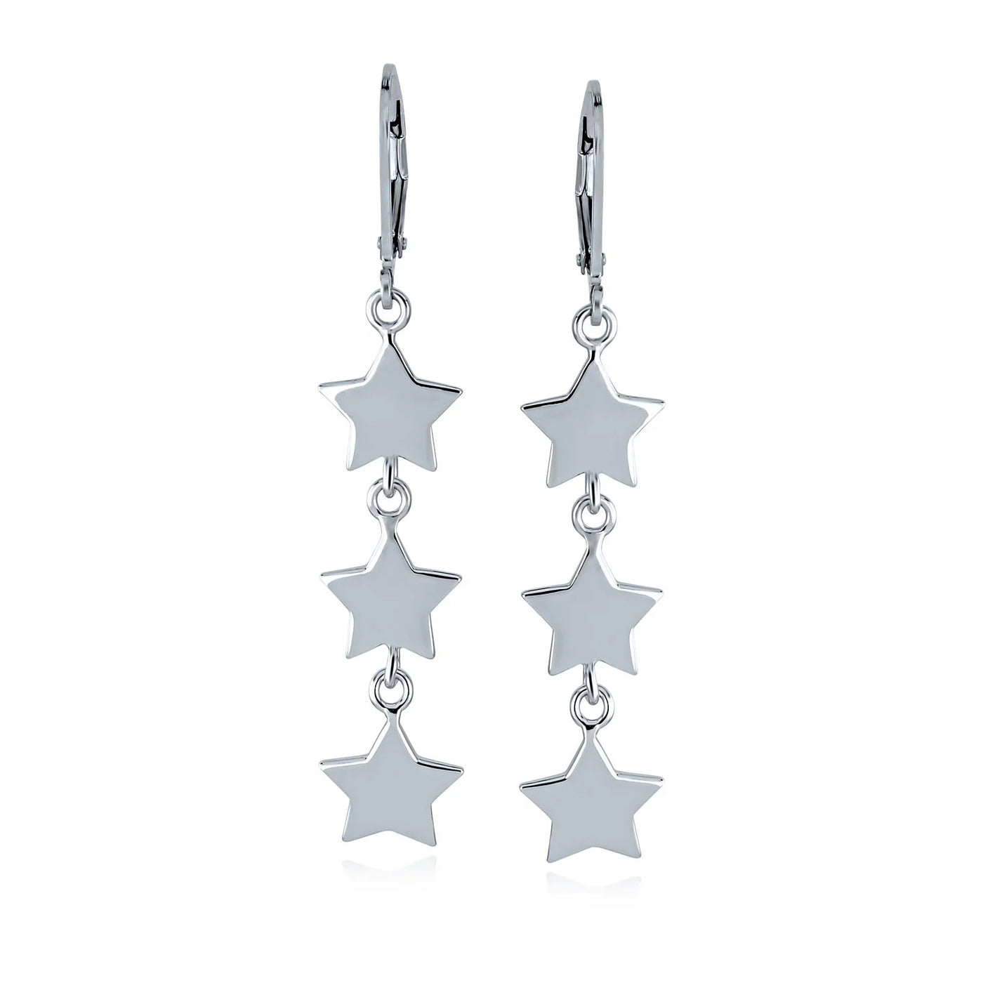 - Enhance your style with patriotic flair using exquisite sterling silver star earrings. Crafted with precision, featuring three captivating dangling stars. Elevate any ensemble with stunning silver star earrings.