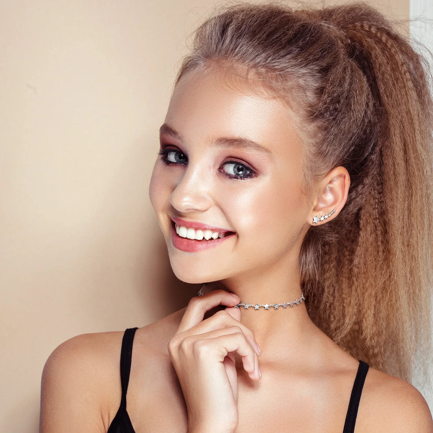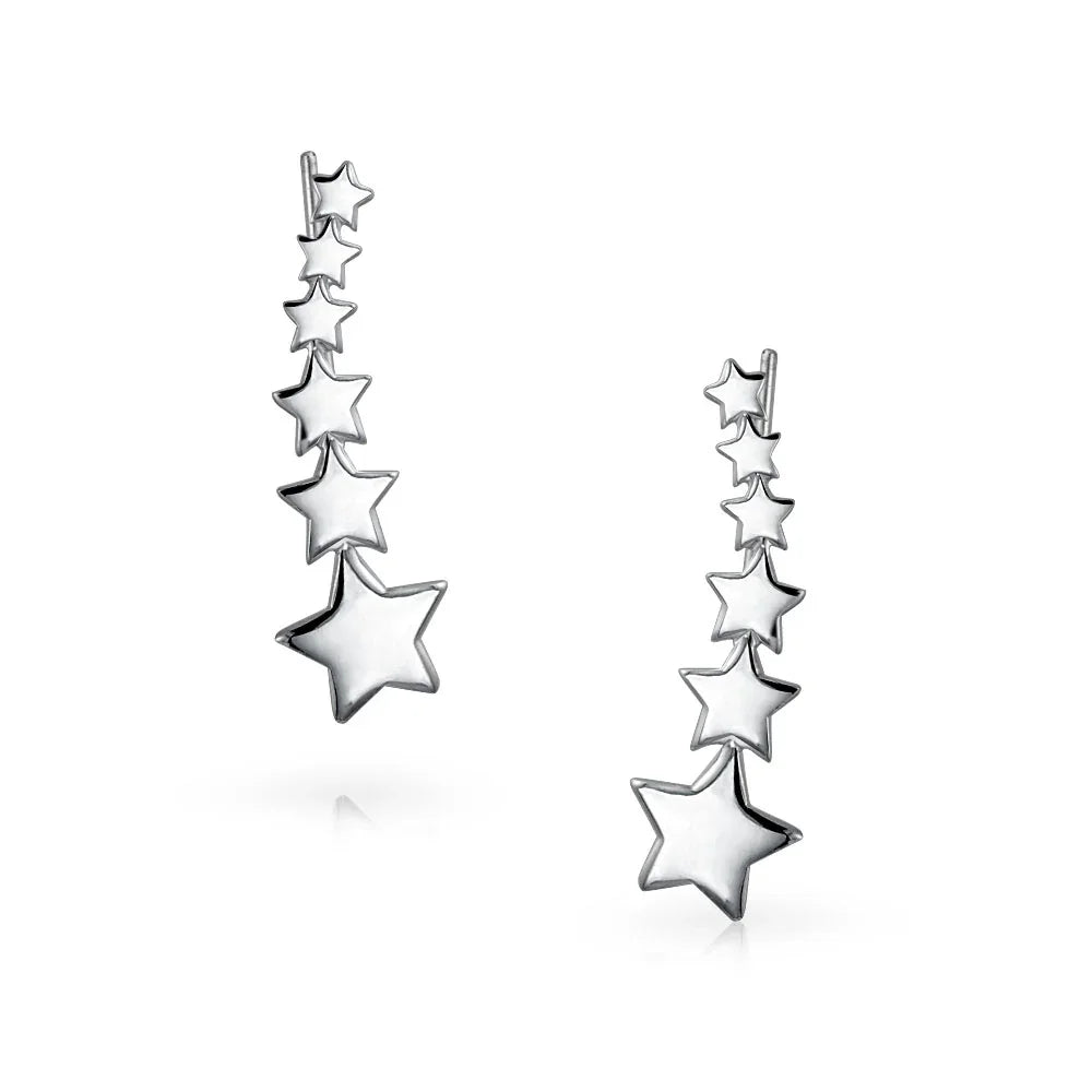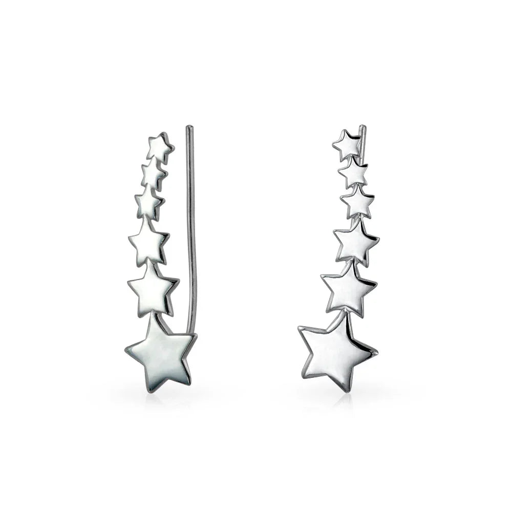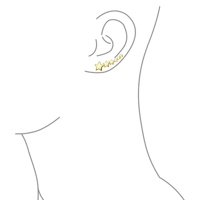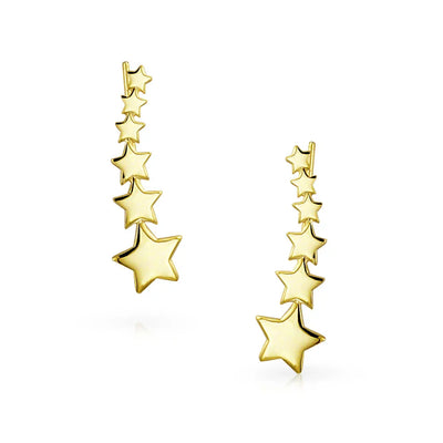 • Elevate your style with these enchanting gold plated sterling silver ear crawler earrings, featuring a stunning graduated stars design that wraps around your ear lobe for a celestial touch.