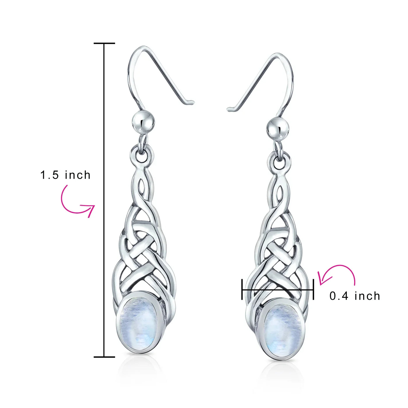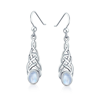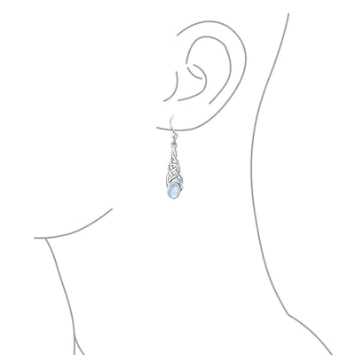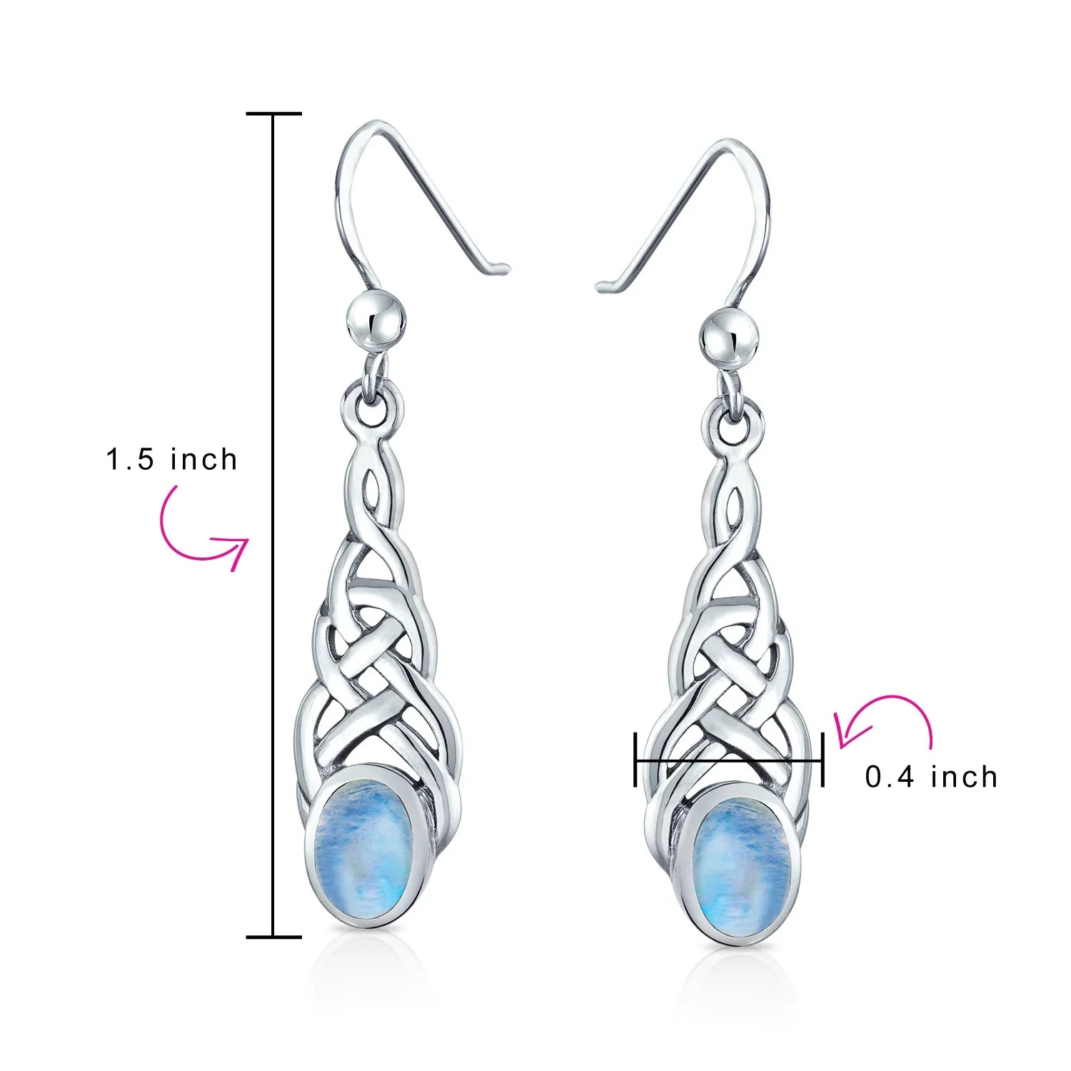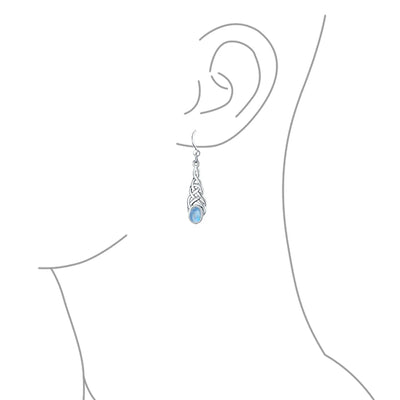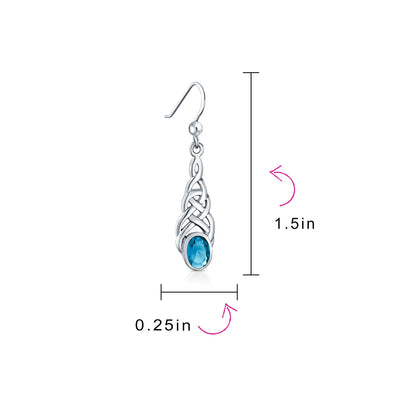 - Feel serene and glamorous with our Silver Blue Topaz Celtic Knotwork dangle earrings. Handcrafted with .925 sterling silver, these earrings feature an intricate tribal design. The oval Blue Topaz stone dangles for an enchanting Celtic look. Perfect for evenings or special occasions, these chic earrings make you feel like royalty. Ideal for December birthdays or holiday gifts, embrace your inner Celtic princess with these stylish dangle earrings.