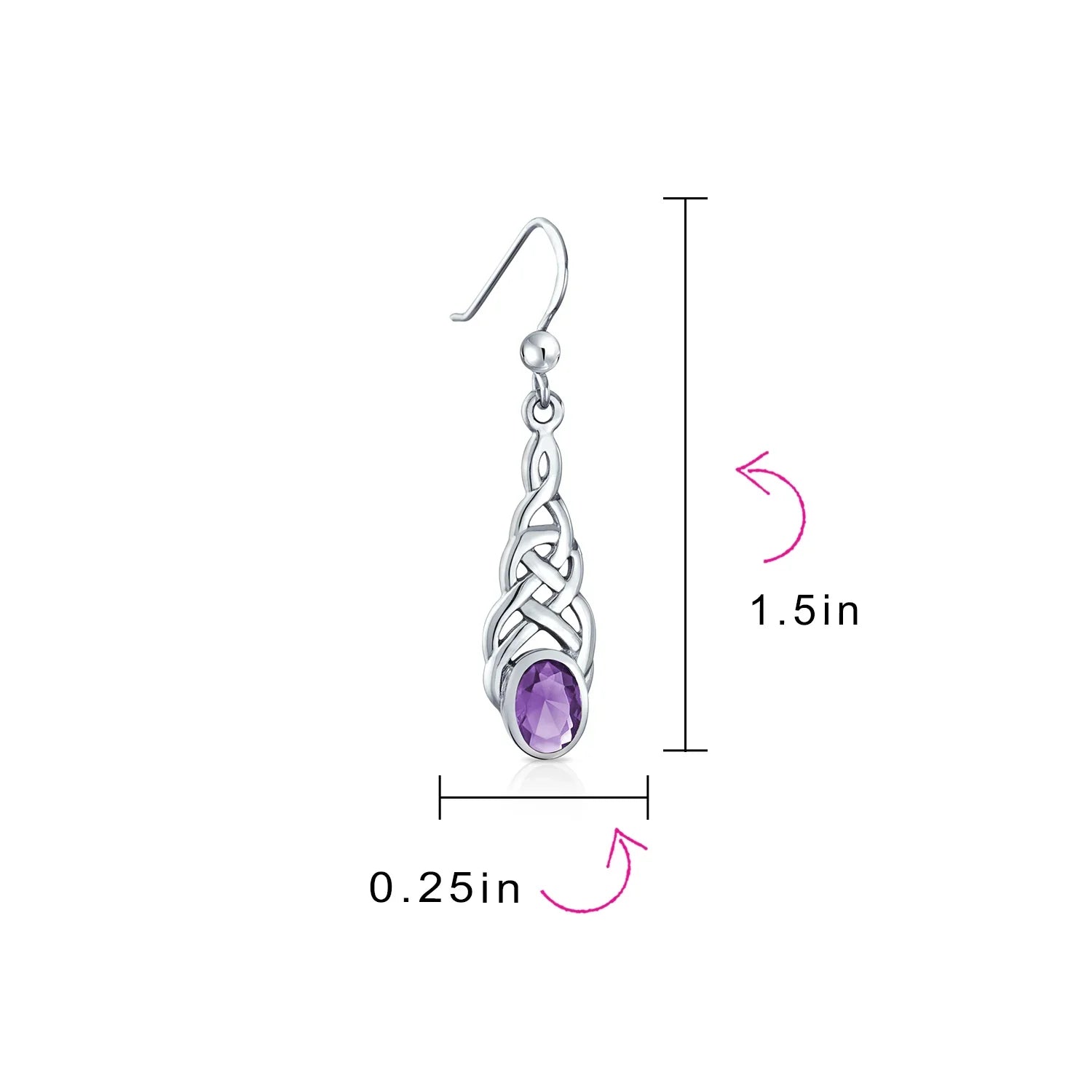 - Celebrate heritage with these 1.5-inch sterling silver amethyst knot drop earrings, featuring continuous Irish knot work symbolizing eternity, perfect for February birthdays.