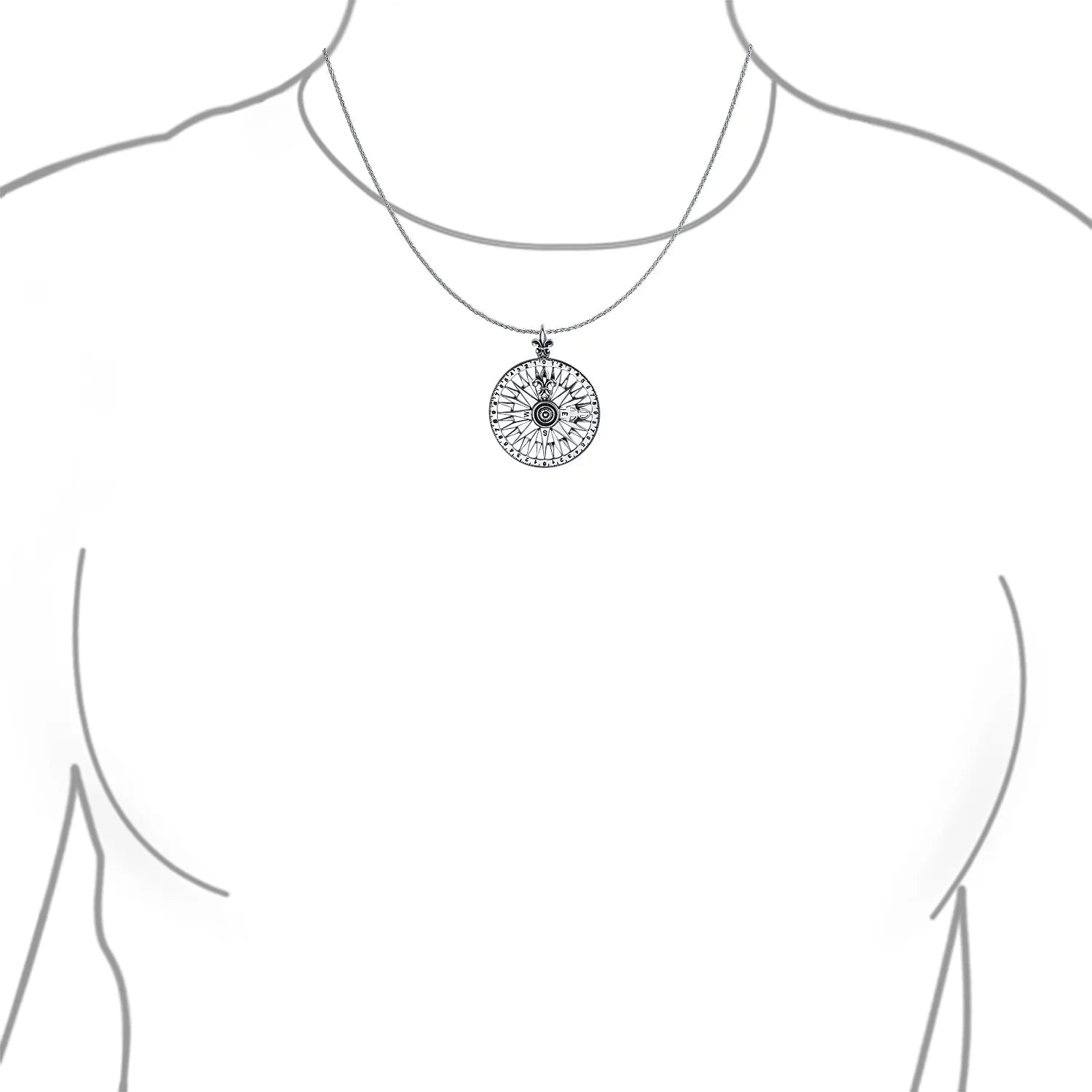 - The compass is one of mankind's greatest inventions. Sailors and explorers have relied on it for centuries. This compass pendant mimics the original rose compass, using Earth's field for direction. Crafted from high-quality .925 Sterling Silver, it boasts intricate detailing. Its design is both attractive and collectible. The high-shine, multi-feature rose compass pendant is a conversation starter. Add this timeless piece to your collection or gift it to travel and unique jewelry lovers.