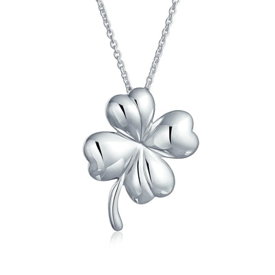 - Embrace the rich Irish tradition with this stunning necklace, featuring a four leaf clover pendant. Each petal symbolizes hope, faith, love, and luck, making it a meaningful and cherished accessory. Crafted with sterling silver, its polished style beautifully complements those with Celtic heritage.