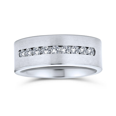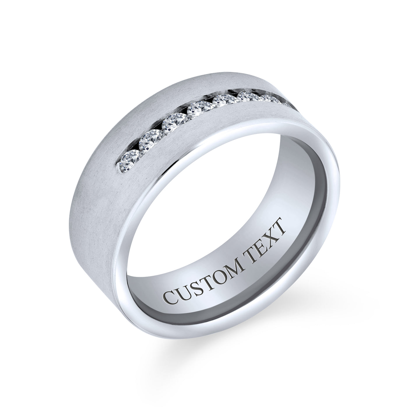 - A stunning men's titanium Wedding Band with resin inlay and eight cubic zirconia stones. This modern 8-stone ring updates the traditional gold band. The brushed center and polished bevel edge create a stylish, simple design. Unisex cubic zirconia rings are perfect for matching Wedding Bands. Enter your marriage as a complementary pair with these 7mm titanium rings.