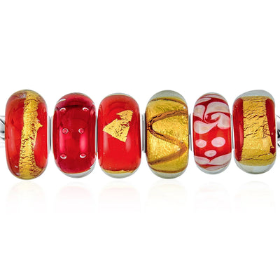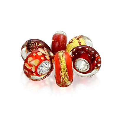 - This Tangerine Murano Glass Bead Bundle includes six artistically-crafted, round beads. Each bead is .5 inches in diameter with a 4mm .925 sterling silver core. These stylish beads feature festive orange and yellow patterns. Perfect for personalized European Story bracelets. Ideal for gifts or adding to your unique charm bracelet. Available in various patterns like love, crystal, heart, and animal beads. Fits bracelets, necklaces, earrings, and keychains.