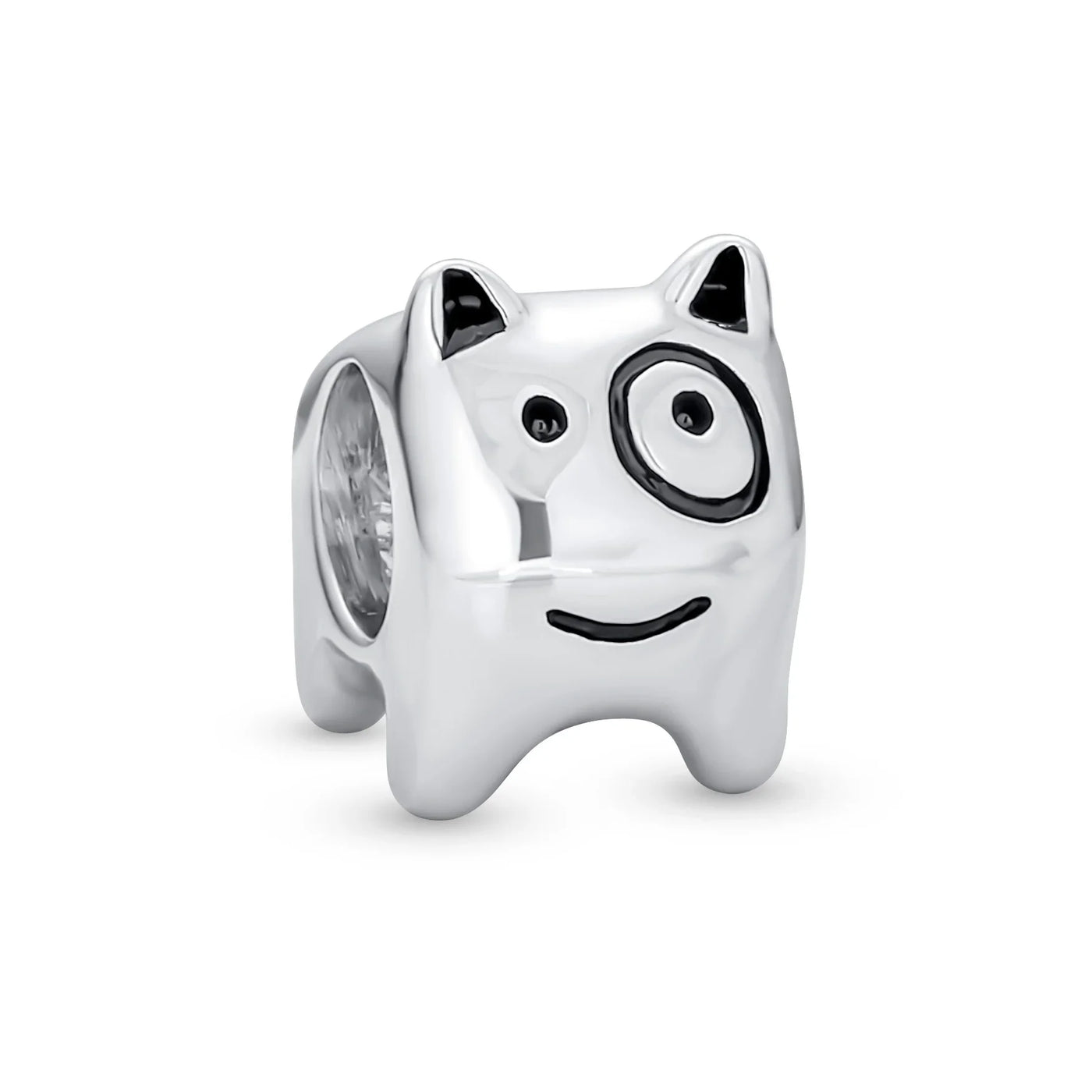- Spot the Dog Bead needs a home on your bracelet. Crafted from .925 Sterling Silver, it's simply adorable. This puppy charm features a cute spot around its right eye. Perfect for dog lovers, this charm is a must-have. Explore heart beads, charm beads, friends beads, enamel beads, animal beads, spacer beads, sports beads, star beads, crystal beads, glass beads, and birthstone beads. Find the perfect charm for your collection!