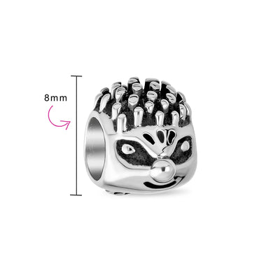 - animal lovers will adore this cute silver hedgehog jewelry bead. Crafted from .925 sterling silver, it adds charm to any bracelet. Detailed face and quills give it personality. Perfect for any animal-themed story bracelet.