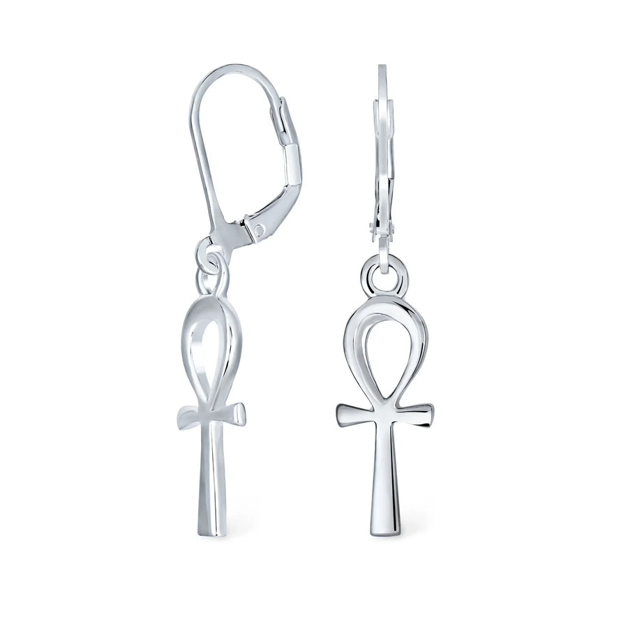 - Sterling silver ankh cross earrings feature an ancient Egyptian symbol for eternal life. A unique alternative to Christian cross jewelry. Traditional cross shape with a loop creates dainty religious earrings. Perfect gift for Christmas and Easter. Silver drop earrings are essential in any jewelry collection. Ideal for pierced ears.