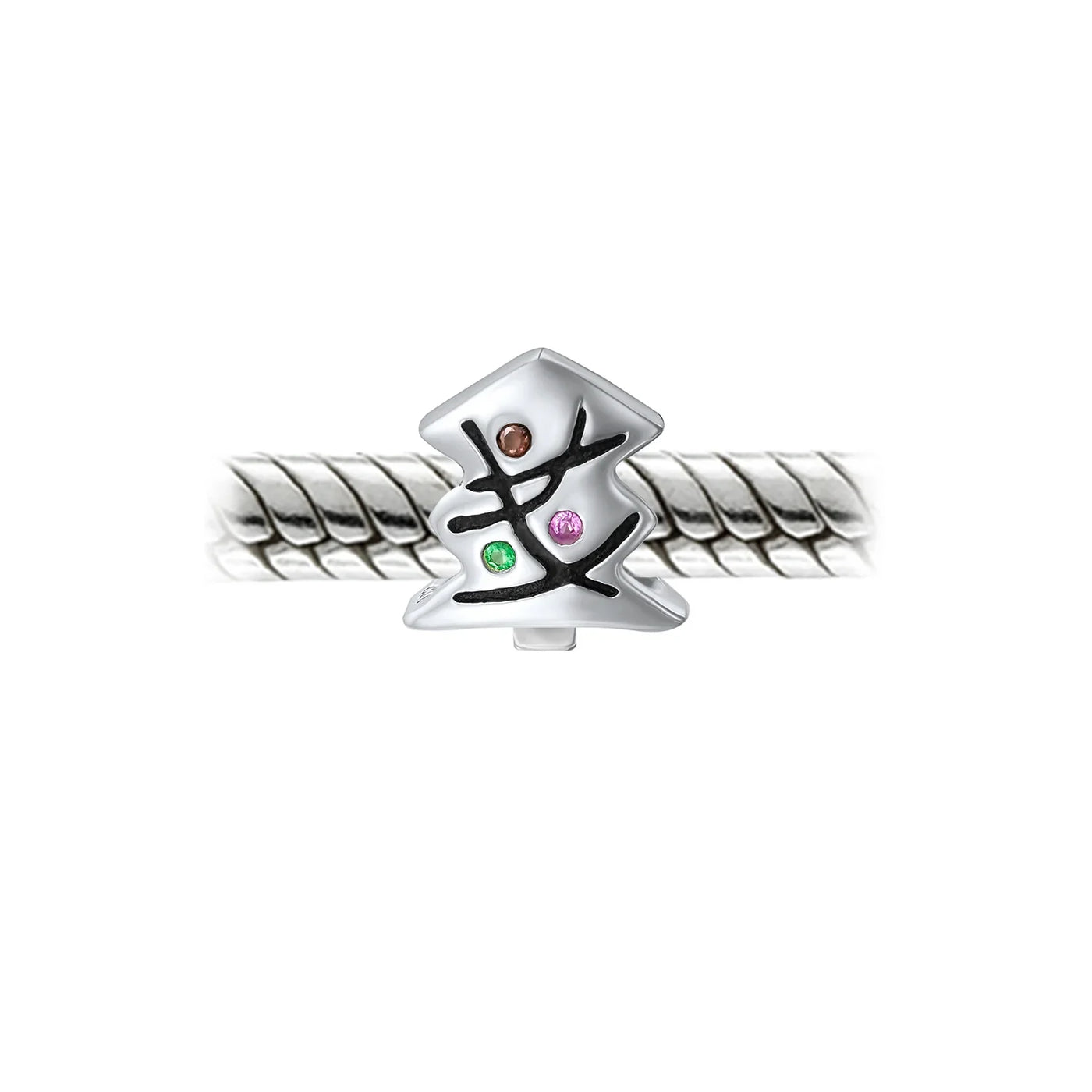 - Six vibrant CZs adorn our double-sided sterling silver Christmas tree bead. Perfect for your holiday-themed European bracelet. This festive sterling silver charm is an ideal gift for bead jewelry lovers. Fits most popular bead brands.