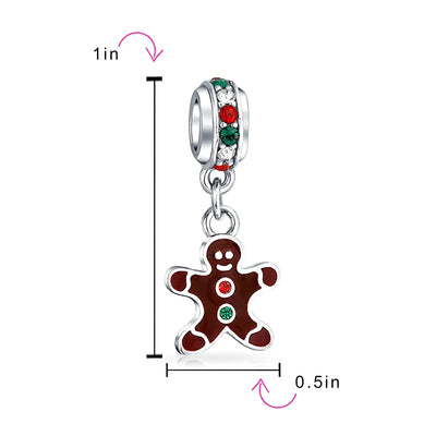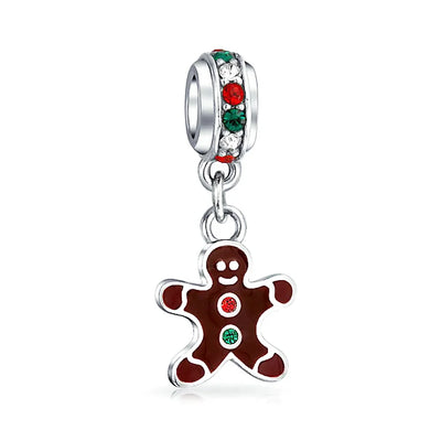 • This holiday season, as the air gets chillier and days shorter, we all seek comfort and holiday joy. The smell of gingerbread always brings comfort and joy. This adorable gingerbread man dangle charm is perfect for your bracelet or necklace. Made of sterling silver, it features brown enamel and red and green crystal accents. This sweet sterling silver gingerbread man bead looks good enough to eat. It dAngles from a sterling silver bead adorned with red, green, and clear crystal stones. Sweeten up your Christmas jewelry collection with this charming piece.