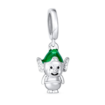 - Boost your holiday spirit with this adorable Sterling Silver elf charm. Perfect for Christmas jewelry, it features a green enamel hat and cute pointed ears. Add it to your bracelet or necklace for a festive touch. This charming elf bead complements reindeers and Santa Claus hats. A wonderful gift for yourself or a loved one.