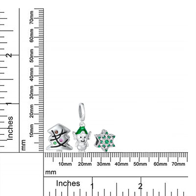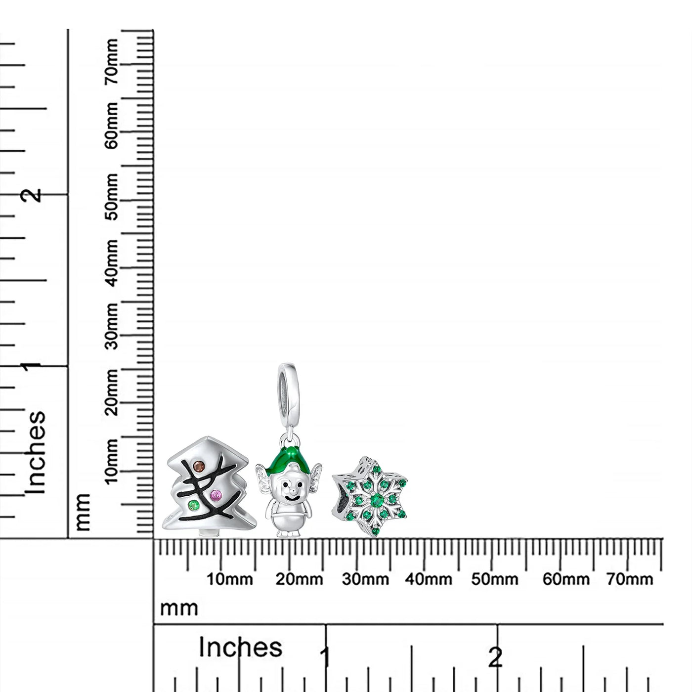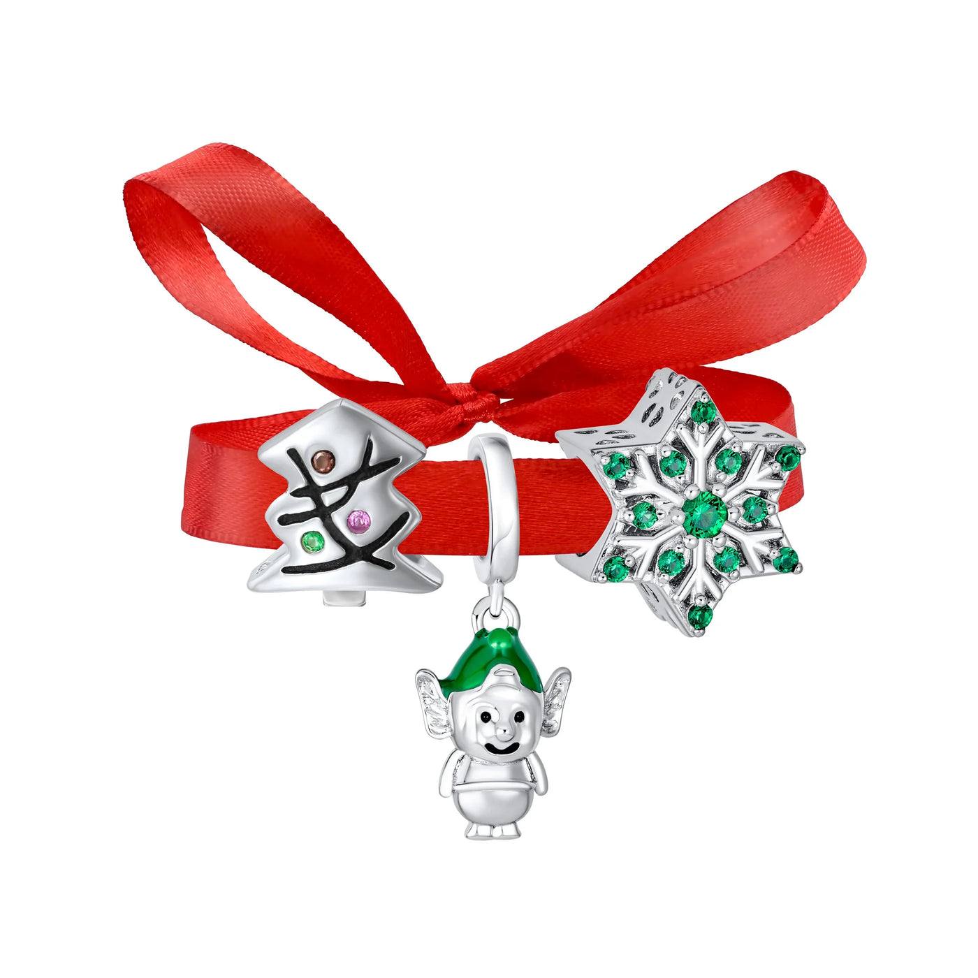 - Add a touch of holiday magic to your charm bracelet with this set of 3 Christmas-themed beads - featuring a Christmas tree, snowflake, and Santas helper. These adorable charms are the perfect way to showcase your unique story and commemorate special memories during the festive season.