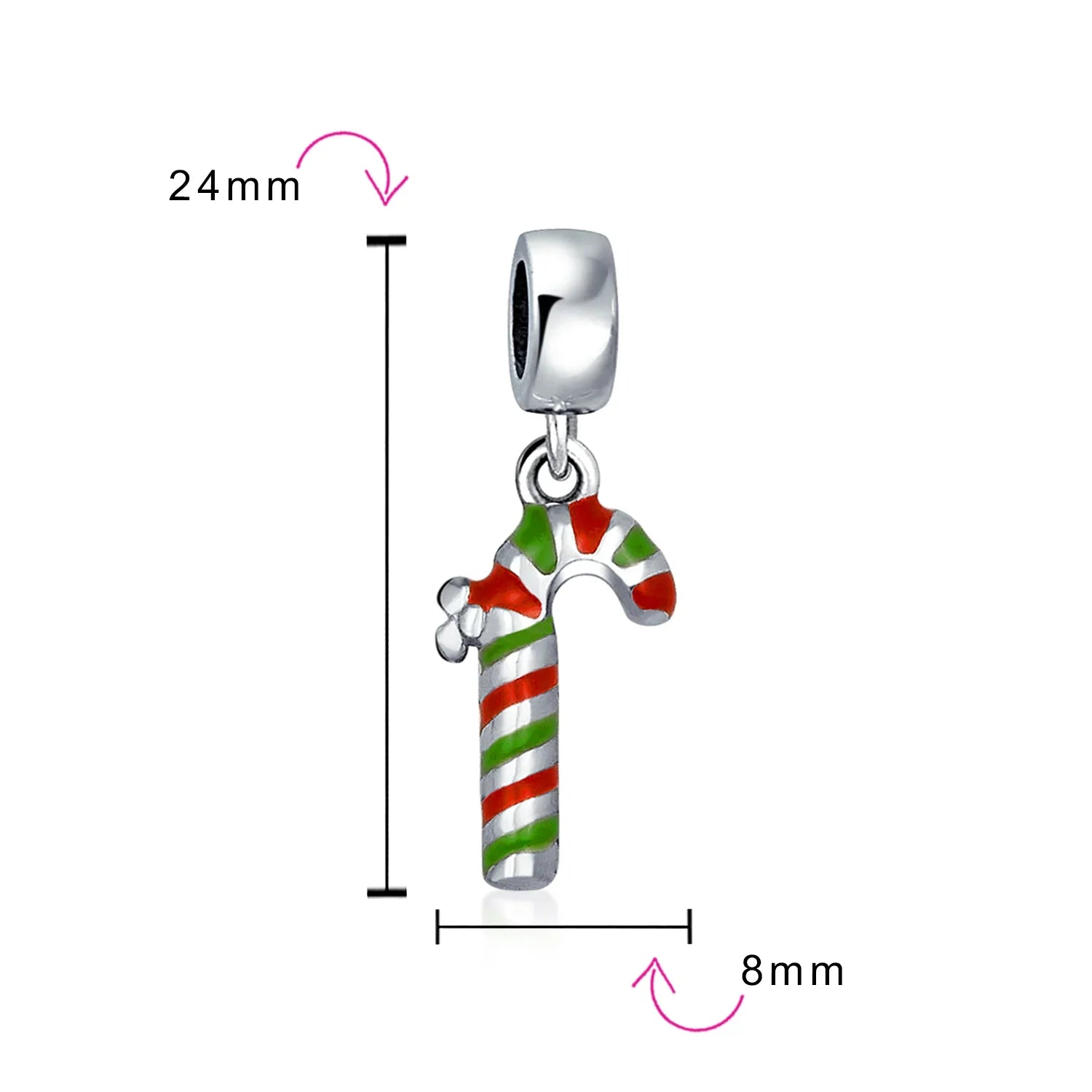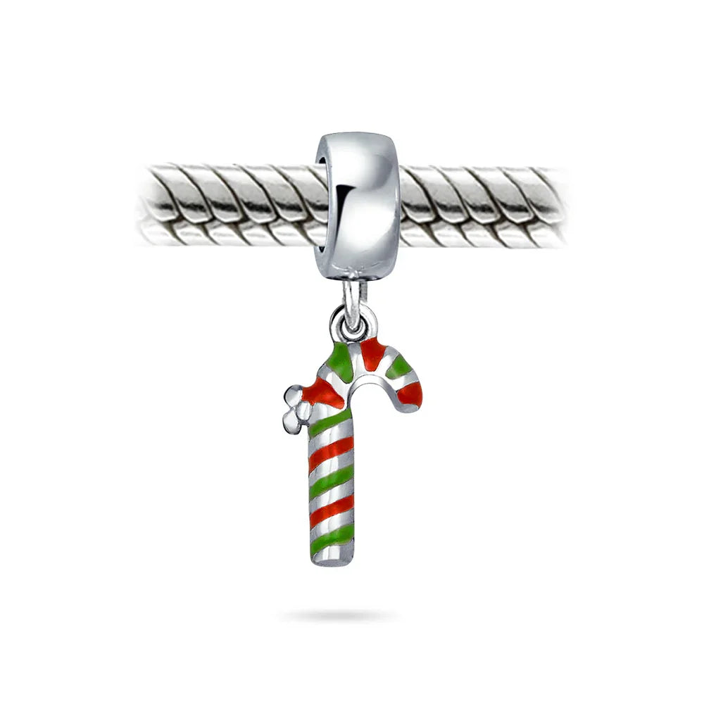 - Enhance your Christmas holiday season with our adorable candy cane charm. Perfect for your beads bracelet, it symbolizes peppermint joy. The crook resembles shepherds' staffs, adding meaning to your bracelet. Crafted with red and green striped enamel, it dAngles from a shiny silver bail. Wear it as a dainty holiday necklace too. Start your beads bracelet journey with our symbolic Christmas bead. Its 5mm bead core ensures compatibility. Embrace the festive spirit with this charming candy cane charm.