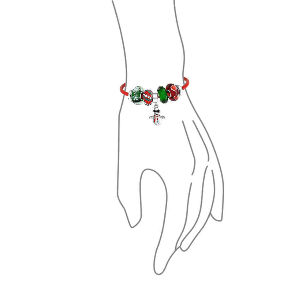 - Looking for a colorful, fun Christmas gift? Our whimsical red leather beads bracelet is perfect! It features a sterling silver "MERRY CHRISTMAS" bead with enamel holly. Another bead asks if you've been naughty or nice. A sterling silver Santa Claus charm and green Murano beads add glam. One bead has white snowflakes and silver foil for sparkle. Gold plated stopper charms provide a lovely contrast. Add half an inch to your usual bracelet size when ordering.