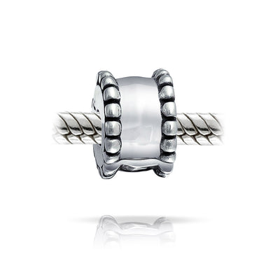 - FORM MEETS FUNCTION - This simply elegant, 925 sterling silver, stopper bead charm features a round shaped design with beaded detail trim, to secure your bead story in place, adding a touch of luster with visual interest.