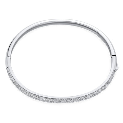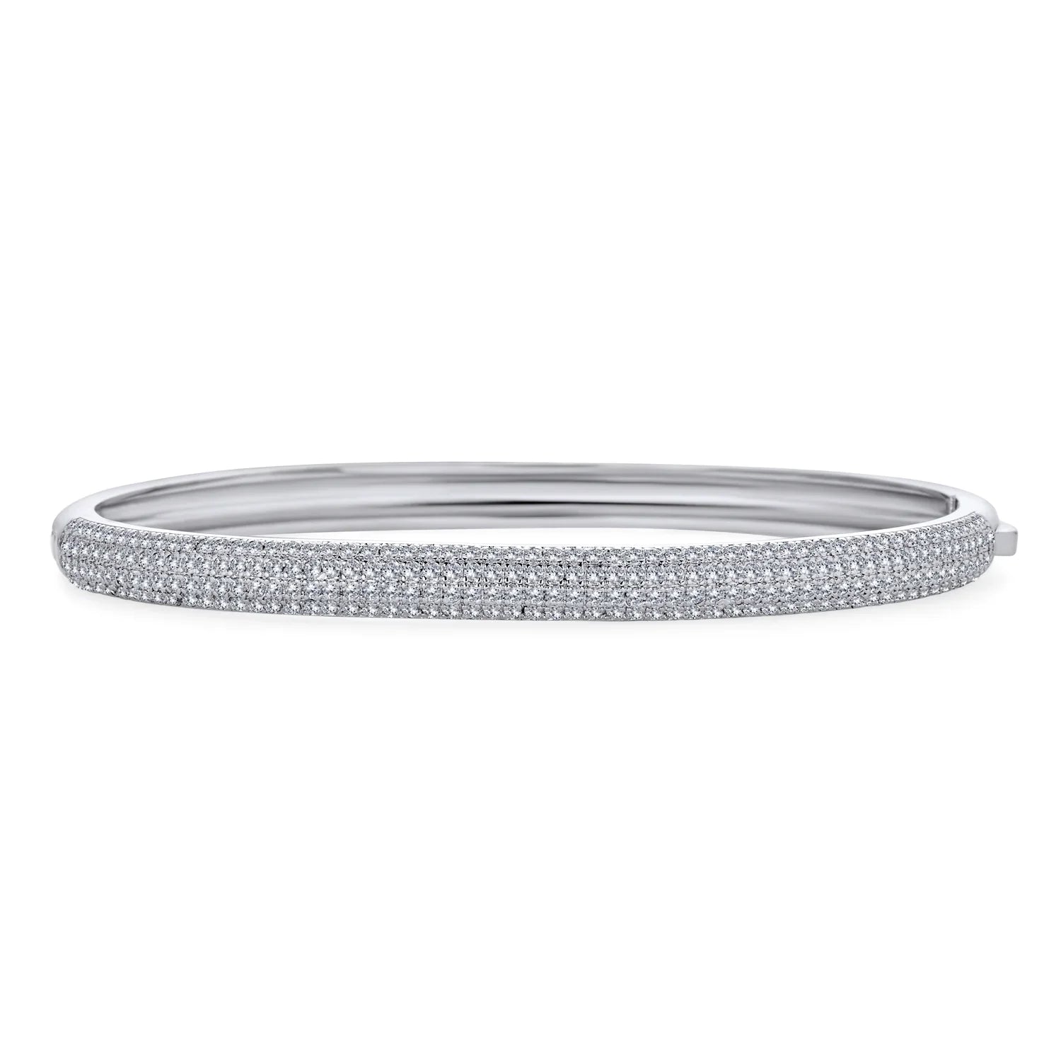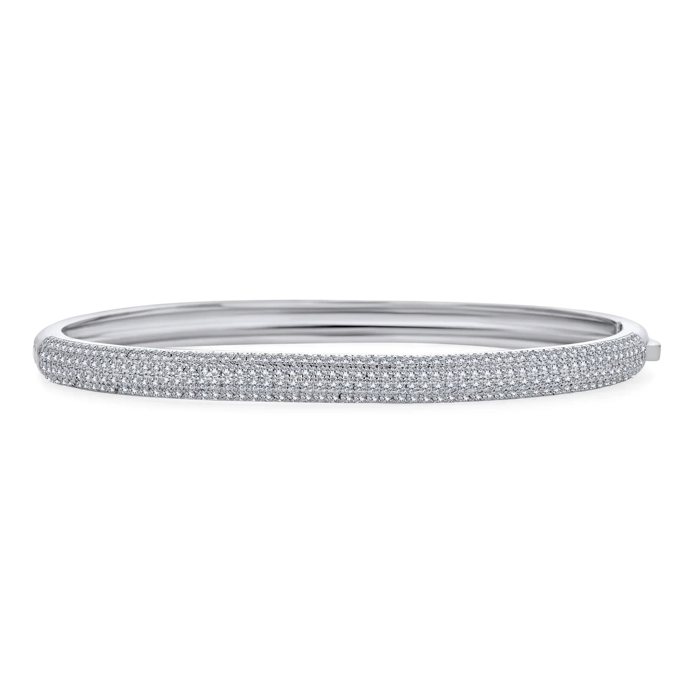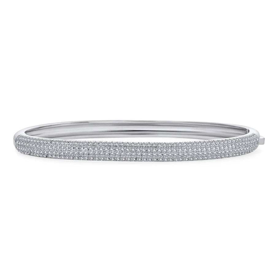 - This stunning bangle keeps you fashionable with pave cubic zirconia stones. Its unique design adds classiness to any outfit. Simple yet slender, it offers the perfect sparkle. Wear one or stack multiple for extra shine. Timeless and stylish, it's a must-have for any collection. Ideal for gifting to friends and family who love elegant bAngles.