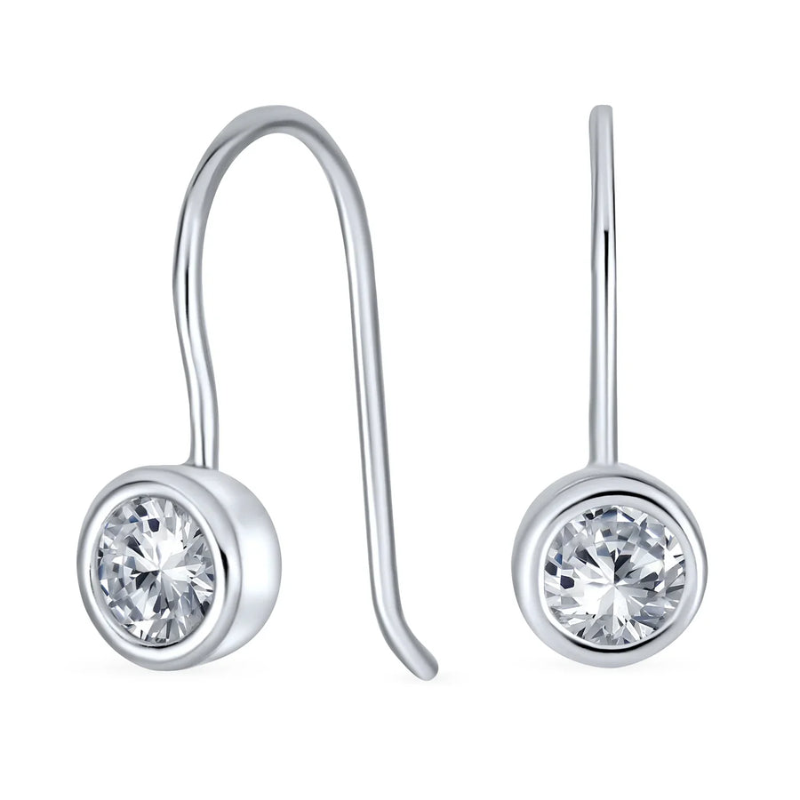 - Add sparkle with these electro coated sterling silver drop earrings . The 4mm bezel set CZ earrings are stylish and fashionable. Pair with other cubic zirconia jewelry for extra dazzle. Affordable modern jewelry adds a smart, classy touch to any look.