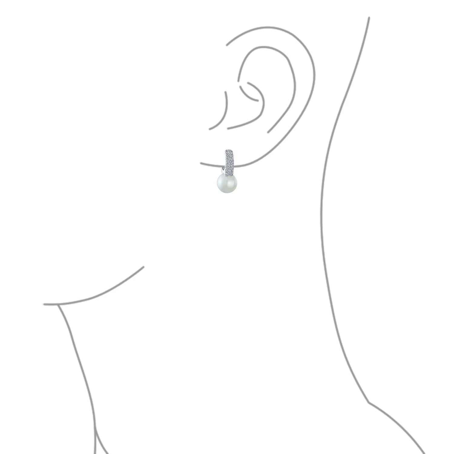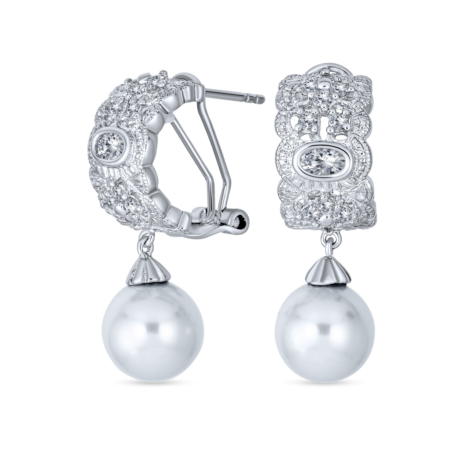 • For Pierced Ears Only, Hinged With Notched Post, Material: Simulated Pearl Anti Tarnish Rhodium Plated Brass Cubic Zirconia, HYPOALLERGENIC - Lead free Nickle-free, Measure: 1 Inch L x 0.4 Inch W, Pearl: 10 MM, Weight: 4.3 Gram