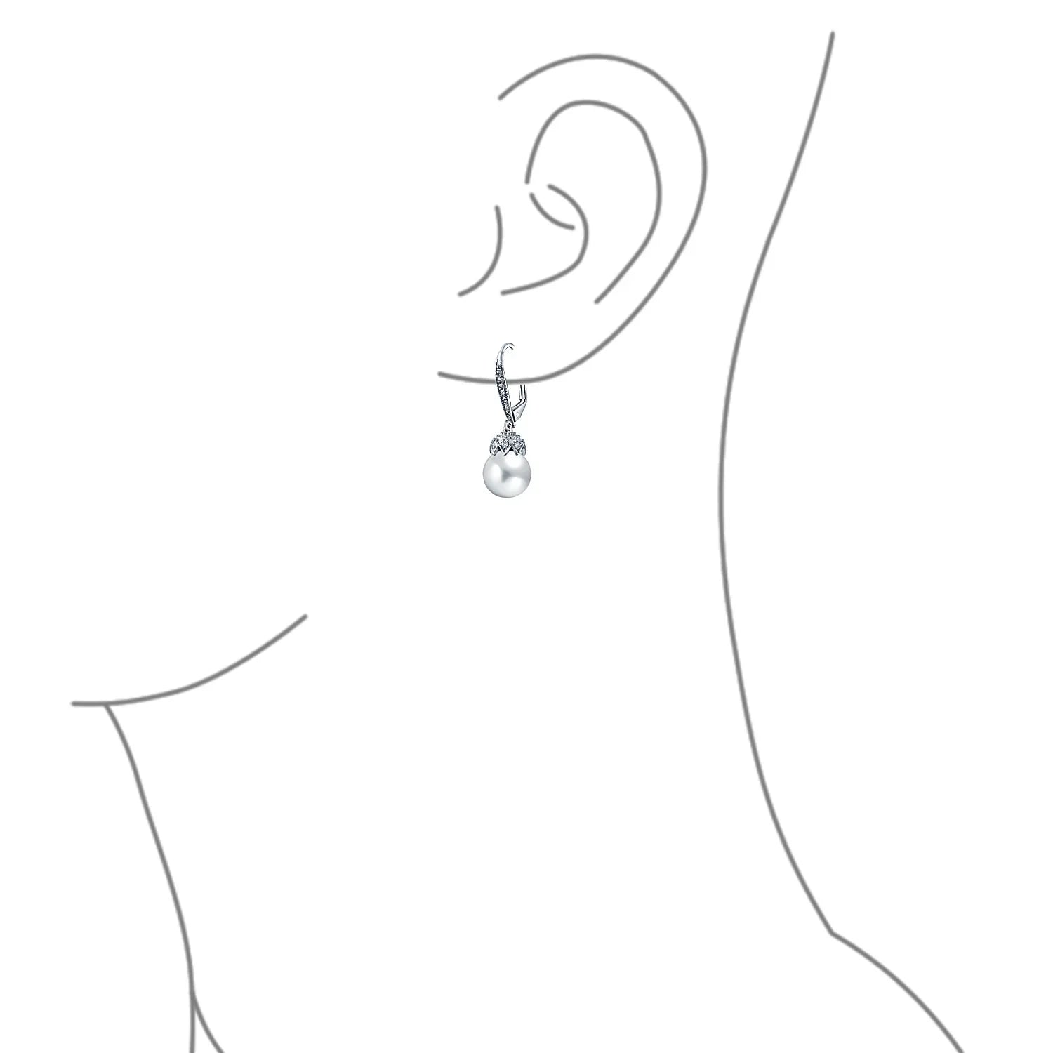 Bridal CZ Round Ball Drop Ball Pearl Earrings Silver Plated