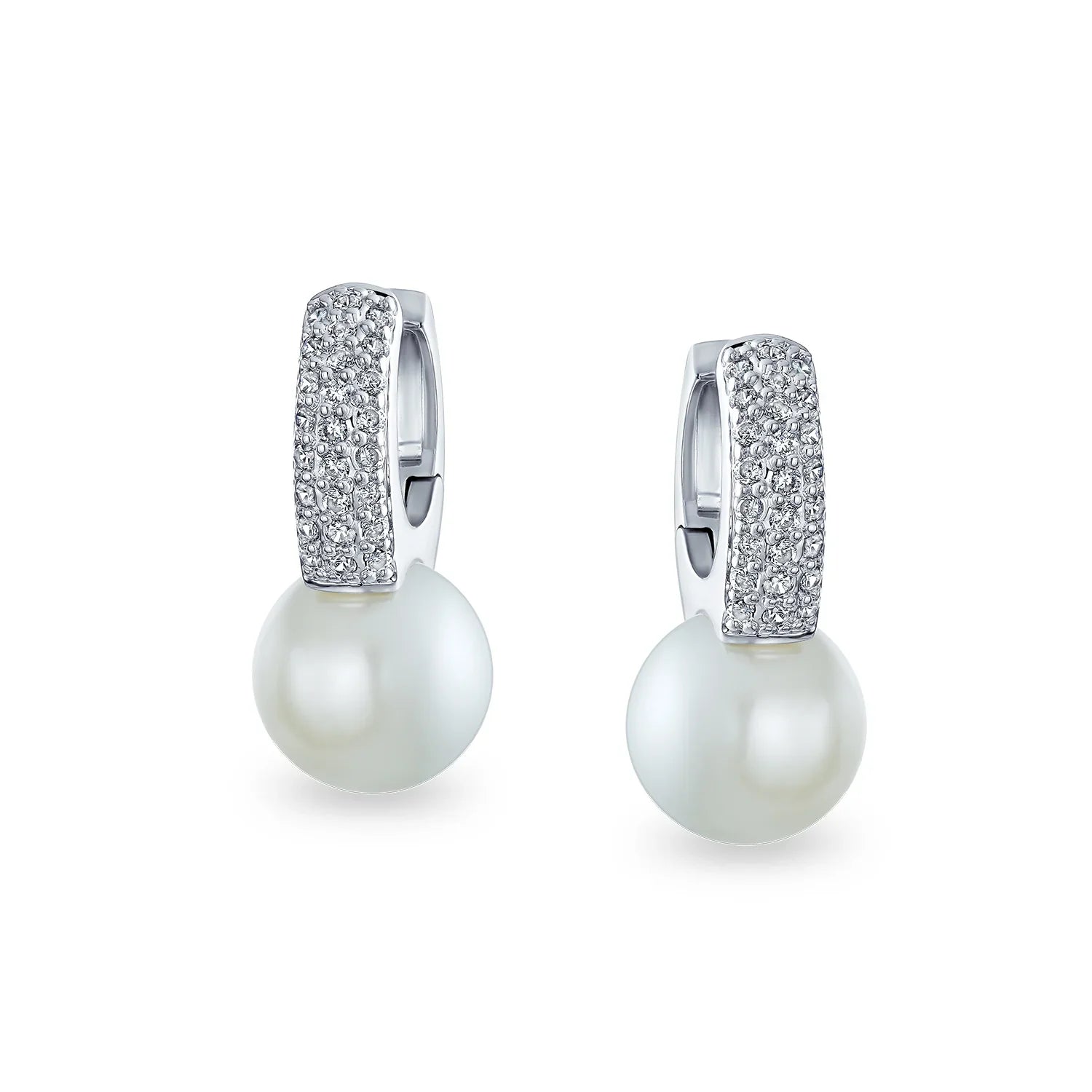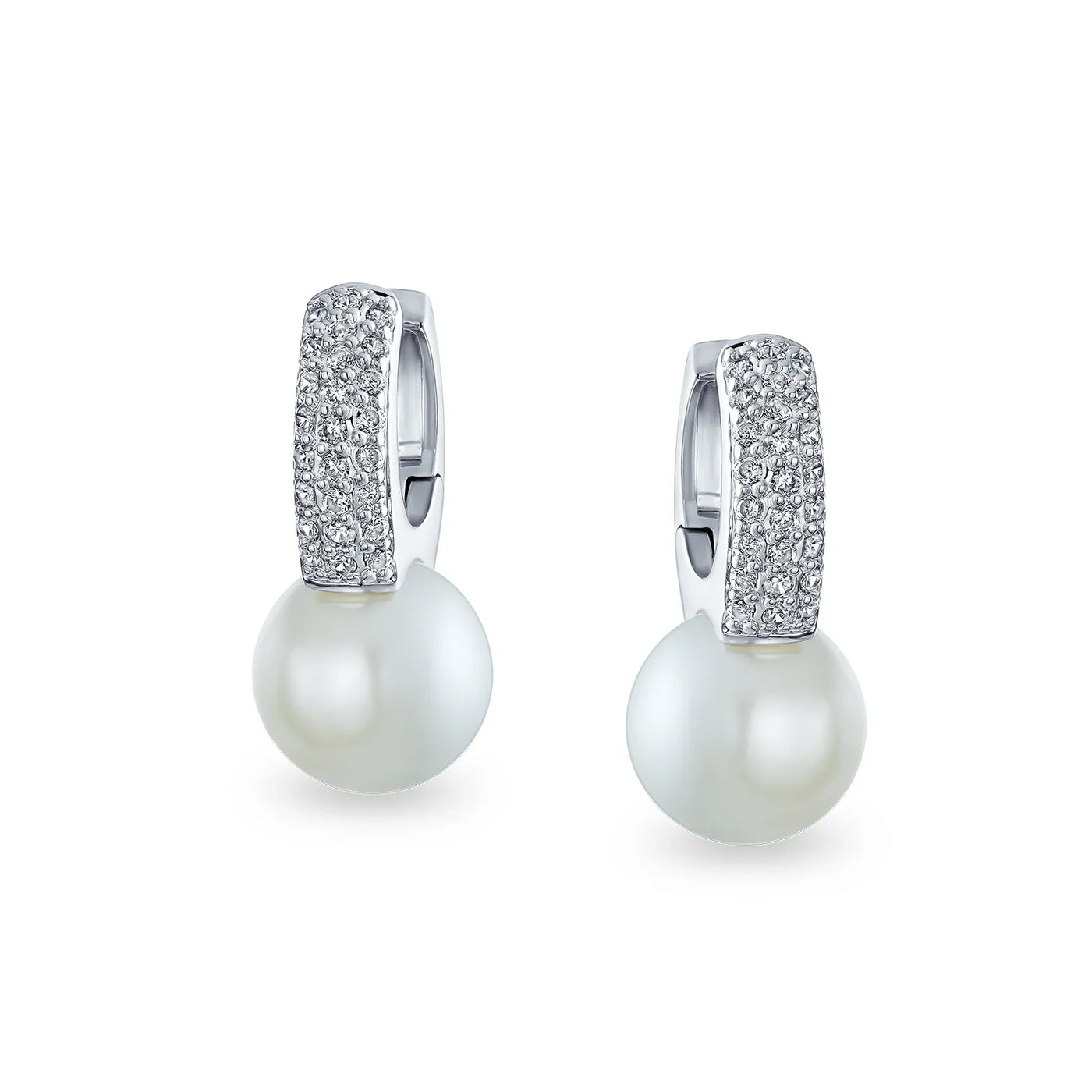 • These lustrous pearl earrings, featuring dazzling CZ glass pearls with diamond-like brilliance, are perfect for wedding jewelry or everyday wear.