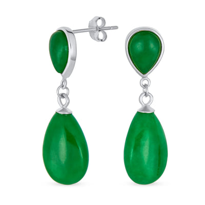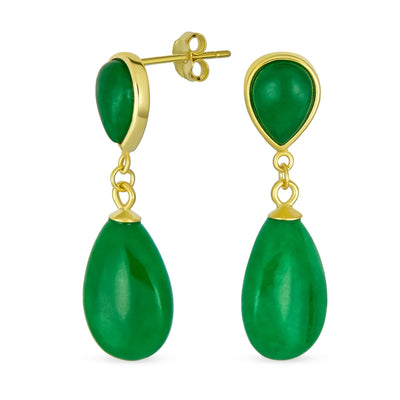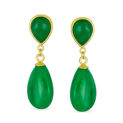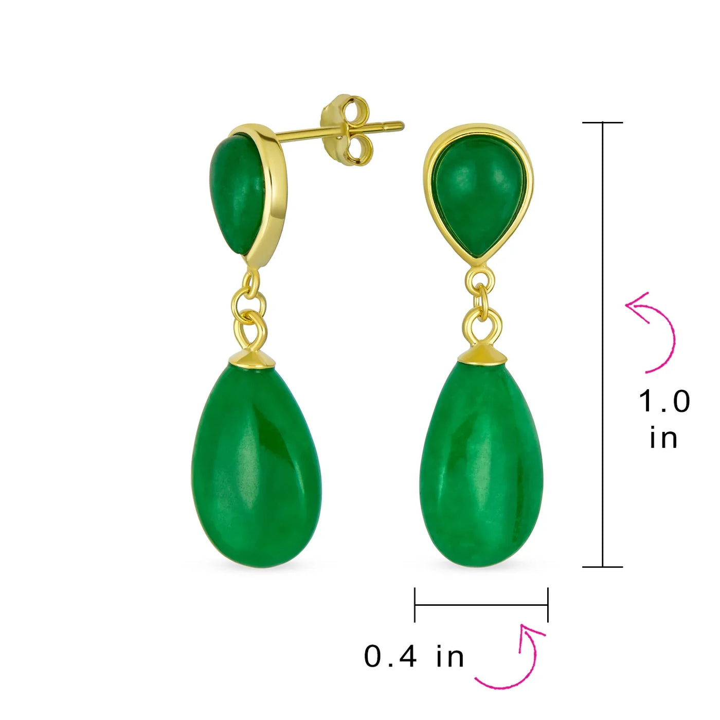 - A petite jade teardrop bezel set in gold overlay crowns these elegant pear-shaped gemstone earrings. At 1 inch in length, they are lightweight and perfectly sized. Known as the gemstone of purity and purification, jade makes these teardrop earrings a prominent jewelry staple. Ideal for those seeking an extra dose of healing and hope, these green jade earrings are a thoughtful choice.