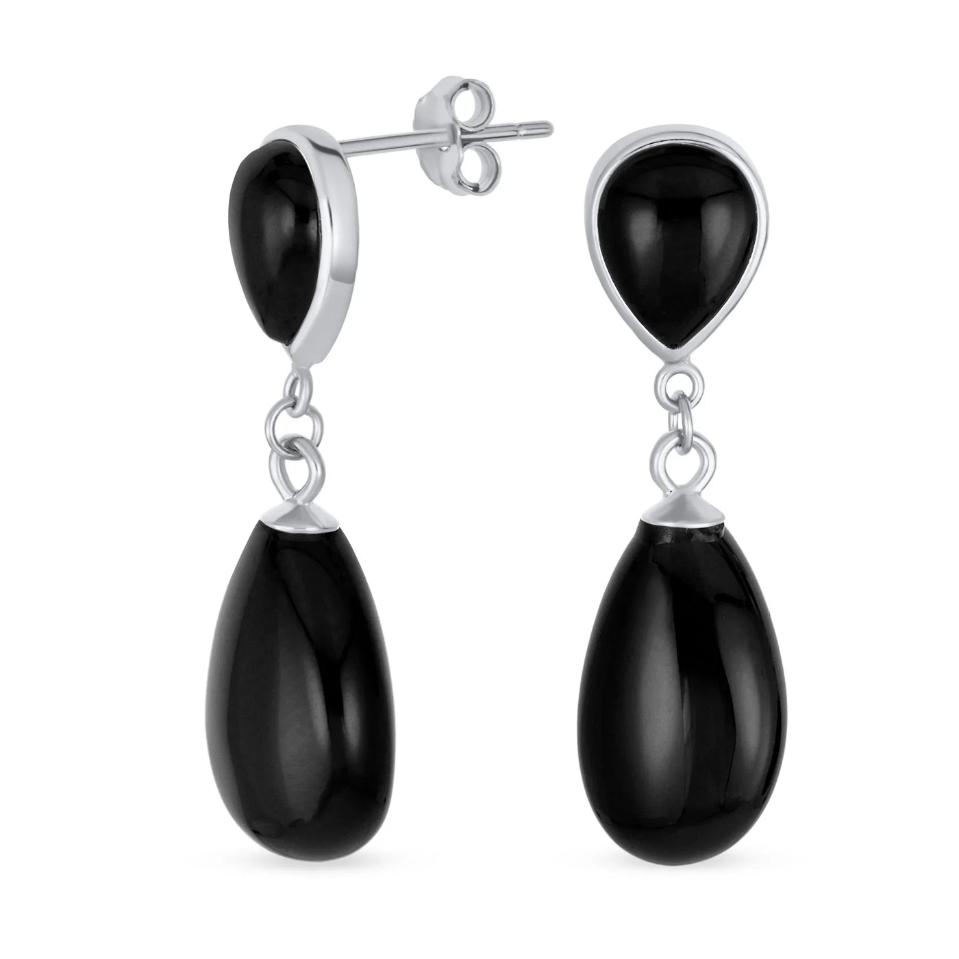 - Jade, the gemstone of purity, shines in our genuine jade dangle earrings. A small pear-shaped stone adds a glimmering touch. These onyx and jade earrings brighten your face and attract compliments. Lightweight and comfortable, they secure with a friction-back post. Order our sterling silver jade or onyx jewelry today for a touch of purity.