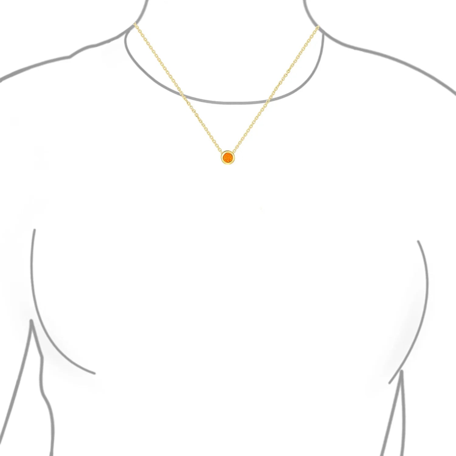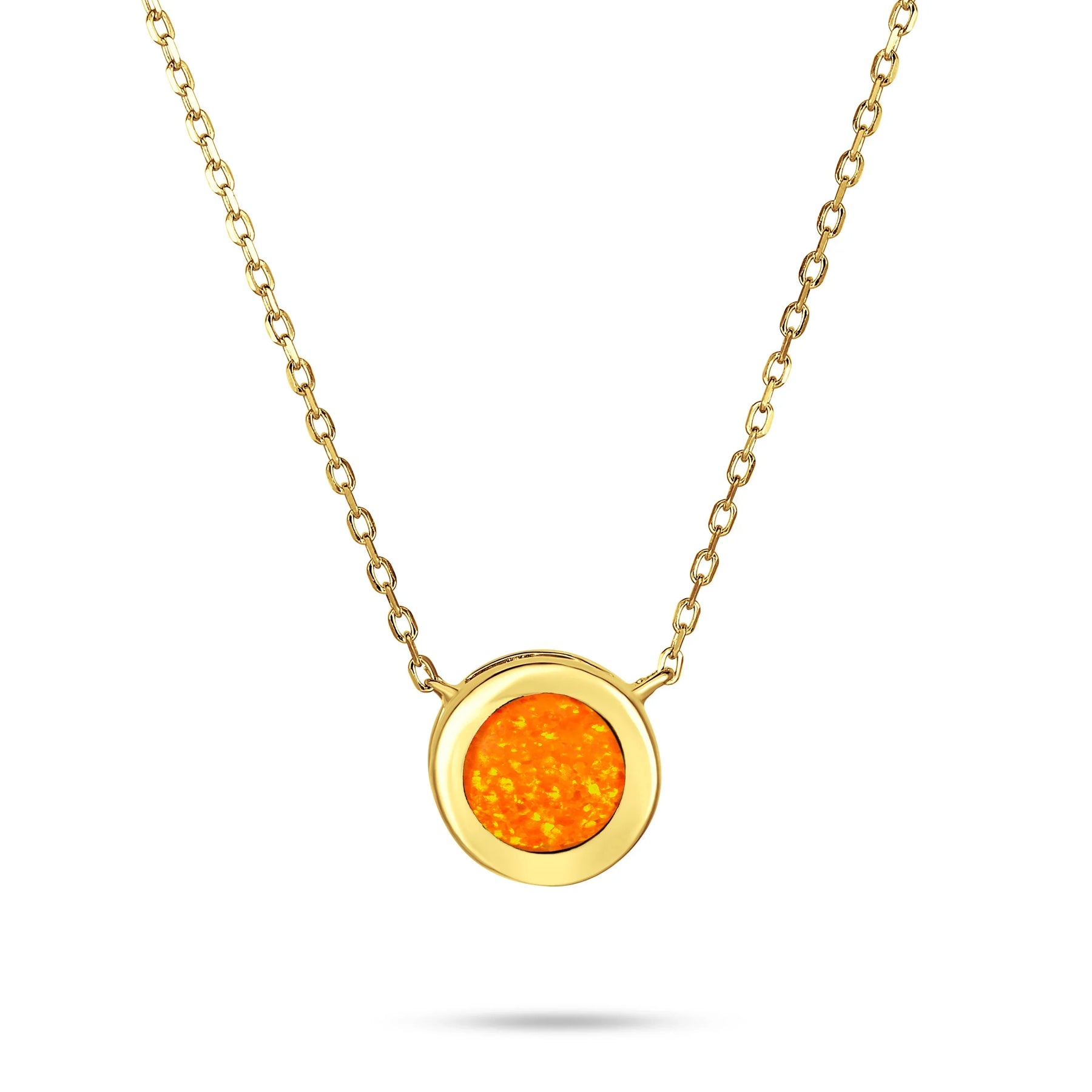 - This wonderful opalescent orange opal station necklace will always lay flat. It is a great gift for layering, dressing up or dressing down. This solitaire, bezels set style, has sparkling finish that draws attention to the stone. The perfect gift for October birthdays.
