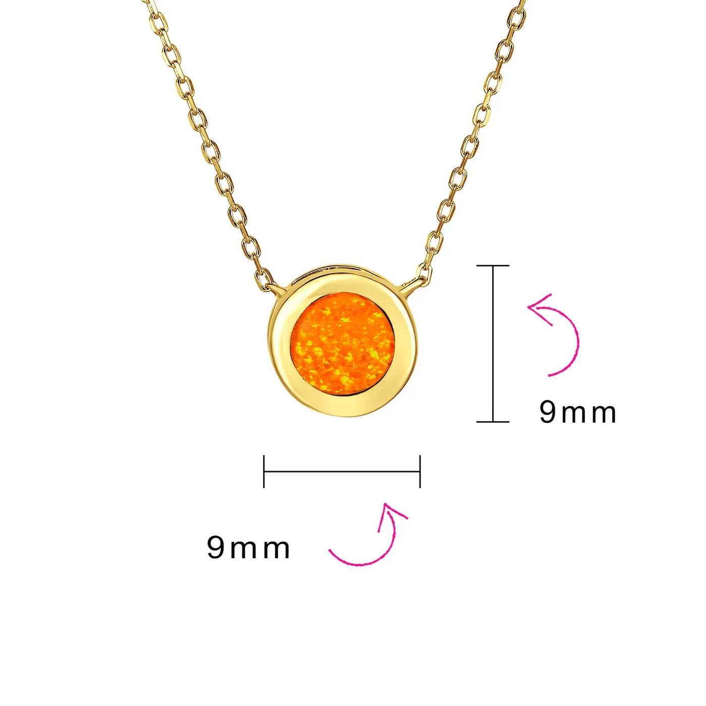 - Measure: pendant 0.4in With Adjustable 16- 18 Inch Chain 2" Extender Weight: 4.4 Grams, Stone: 5mm Material: Synthetic Opal.925 Sterling Silver 14K Gold Plating, HYPOALLERGENIC - Lead free Nickle-free Each piece is stamped