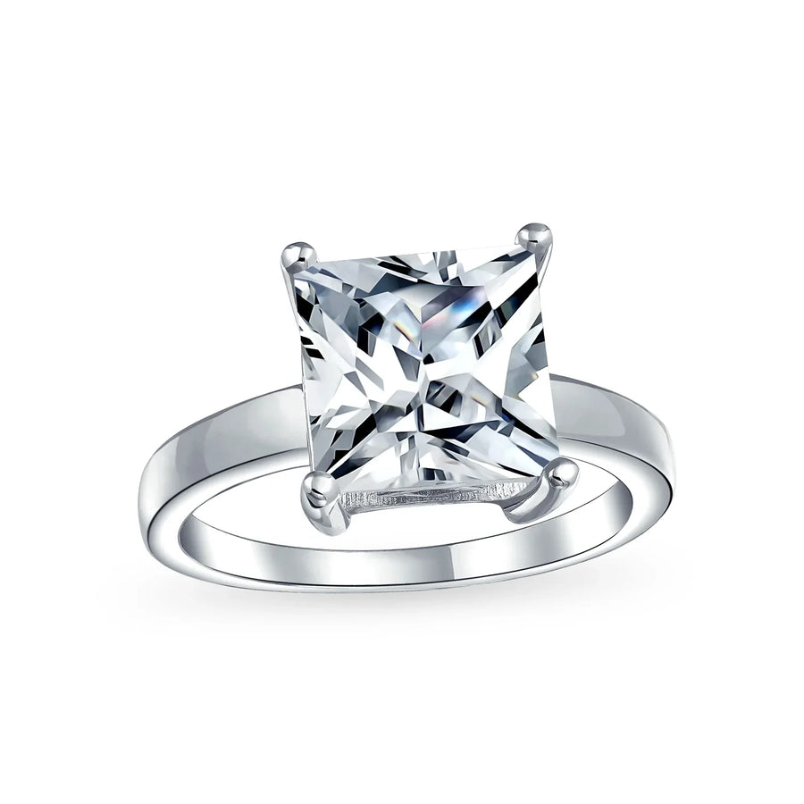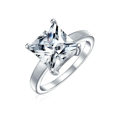 Classic 3CT Princess Cut Solitaire Engagement Ring in Sterling Silver