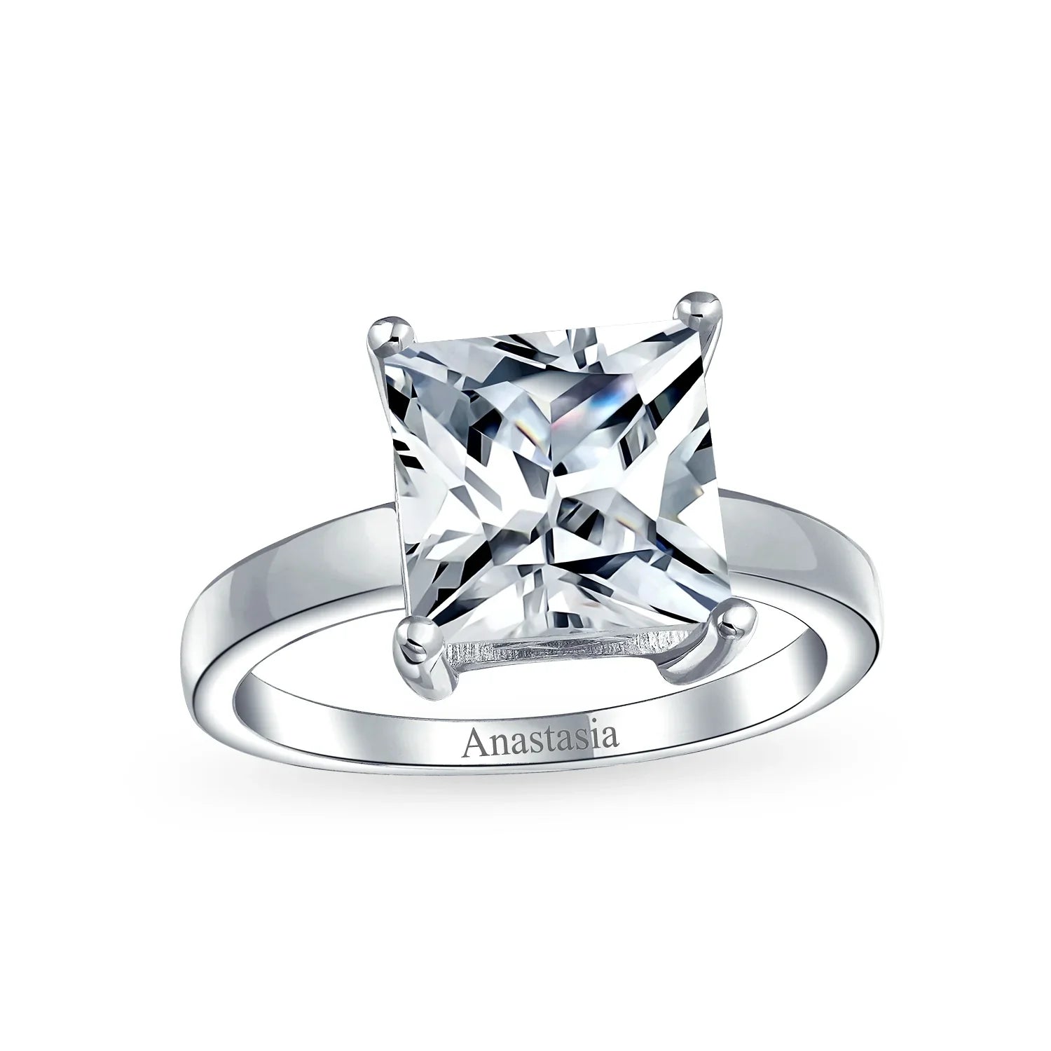 • Propose with the perfect piece. These cz rings epitomize sophistication with a polished sterling silver band and princess cut solitaire stone. Our solitaire rings complement every outfit and occasion. Even if she is anything but simple, this elegant single stone cz ring will look stunning on her finger.