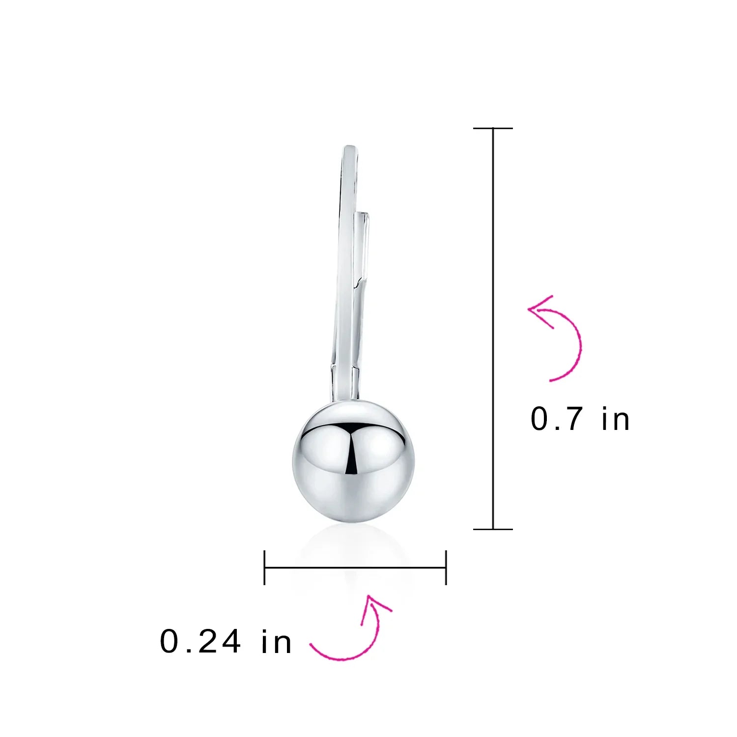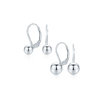 Set of 2 Drop Ball Earrings Silver 6MM 8MM Bead Leverback
