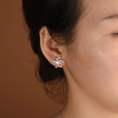 - Discover our sterling silver snowflake earrings, meticulously crafted for uniqueness. Perfect for the holiday season or snowy days. These fashionable stud earrings for women blend fun and style effortlessly. Embrace winter with these chic, simple, yet stylish accessories.